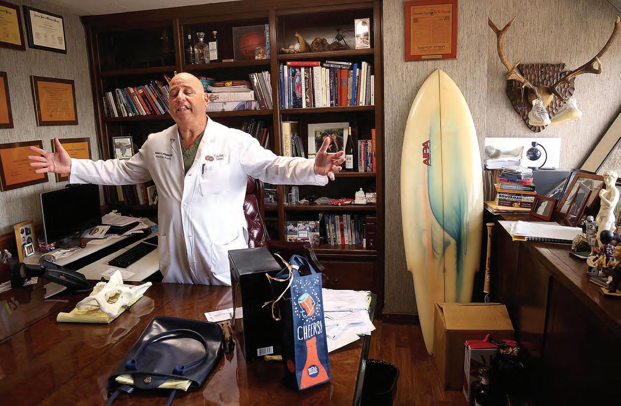 “This is a sport which has the adrenaline rushing in every 50-yearold, 60-year-old, 80-year-old,” Klapper told me in his office, which is the starting point in his joint replacement factory. The walls are covered with photos of star athletes and A-list Hollywood celebrities he’s operated on.