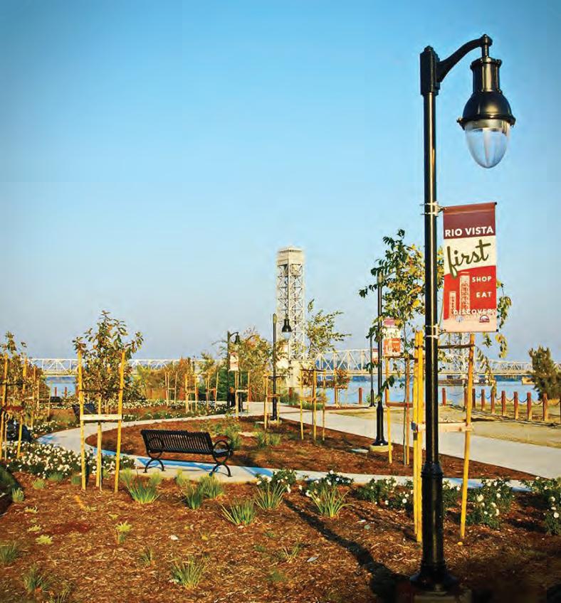 Waterfront Promenade: Located on the Sacramento River next to the Rio Vista Bridge, the park features a fishing dock, fish-cleaning station, picnic tables, barbecues and restrooms It’s a popular place to go for a walk or a jog