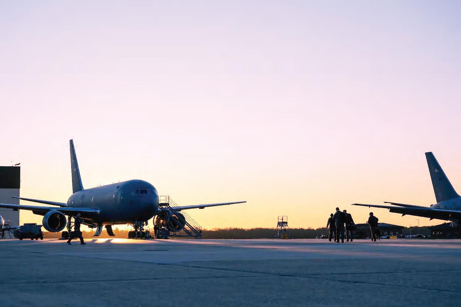 frame,” said Lt. Col. Paul LaSorda, 32nd Air Refueling Squadron commander. “The team is pushing the KC-46 enterprise to be at the leading edge of the Mobility Air Force, delivering not just airborne fuel to the most forward part of the aerial fight, but connectivity, command and control and battlespace situational awareness for the joint force. When you look around the room at the KC-46 Weapons Systems Council and at the personnel (who) planned Exercise Krampus, there is a unified goal: for the KC-46 to lead the Mobility Air Force and win the next fight.”