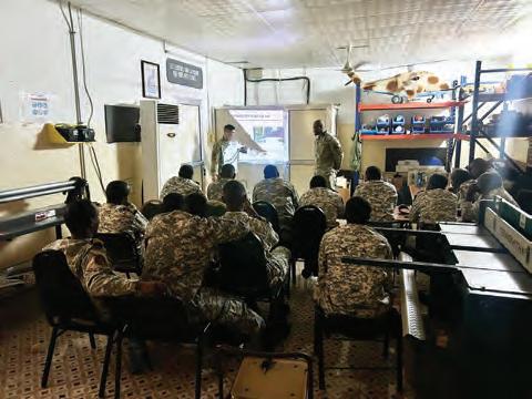 Air Force Air Advisors assigned to the 818th Mobility Support Advisory Squadron and 621st Contingency Response Group train a class of Djibouti Air Force airmen during a mobile training team visit to Camp Lemonier, Djibouti, in February.