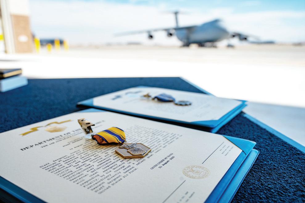 Swanson and Gore were each awarded the Air and Space Commendation Medal and Hyslop was awarded the Air and Space Achievement Medal for their heroic performance.