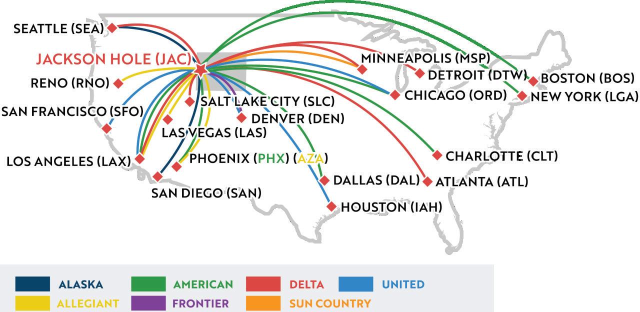 “The increase in service is a testament to the history, demand, and faith our business community established with the airlines, beginning with our first Minimum Revenue Guarantee agreement in 1986, resulting in American Airlines non-stop service from Chicago”, stated Mike Gierau, Chair JH AIR. “Our business community, with the support from the State of Wyoming, has been exemplary in their leadership of contracting and managing air service. In addition, and critical to the contracting of service, is the investment in our destination experience