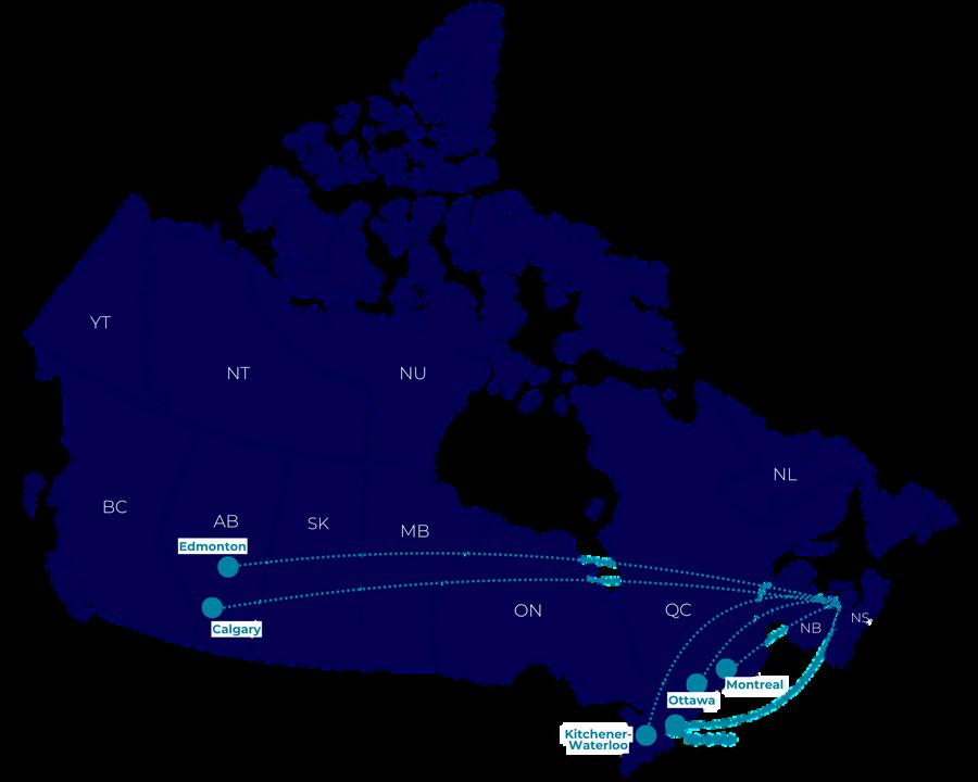 The Charlottetown Airport (YYG) offers direct flights from Montréal, Toronto, and Ottawa on a year-round basis and, Calgary, Edmonton, and Kitchener-Waterloo on a seasonal basis