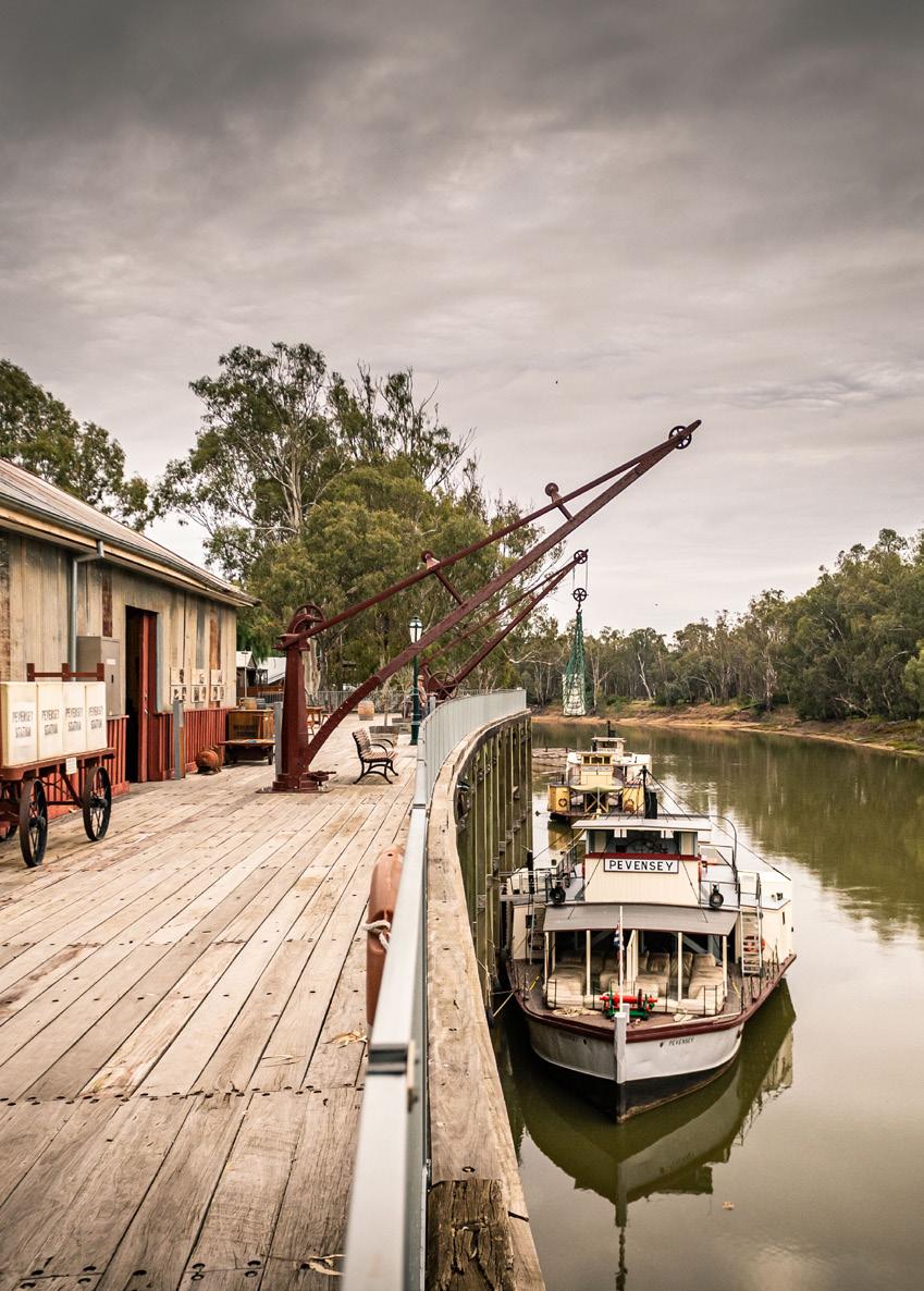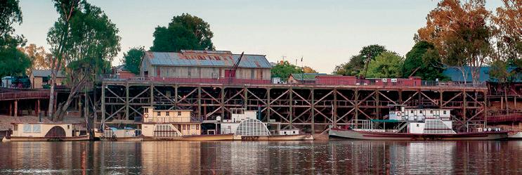 At its peak, the 1865 wharf was over 300m long and supported eight red gum saw mills. It was made famous in the TV series All the Rivers Run. Today, it is a place where you can learn about the early pioneering days, view steam-powered exhibits, take a paddlesteamer cruise, and visit the surrounding historic shopfronts, pubs and cafes.