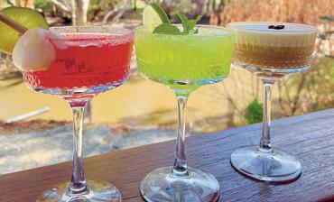 Dine inside or enjoy the sunny days in the outdoor huts.