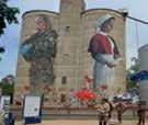 the district to head off to WWI. With two days to go before opening (Anzac Day) we decided we wanted poppies painted on the silos, racing over to Shepparton to get paint. They were possibly still wet during the service.