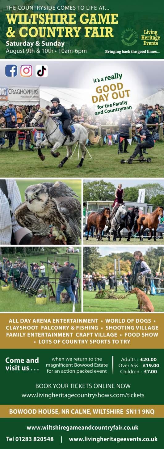 Wiltshire Game & Country Fair returns to Bowood House Estate on 9-10 August, bringing the countryside to life with sports and pursiuts to take part in or try for the first time. From equestrian stunt riding to ferret racing, falconry and various dog displays, there’s plenty to see across the weekend. There will also be opportunities to go shopping, with a wide range of country, craft and food retailers waiting to meet you. There are also two food courts, ideal for taking a refreshing break with a cold drink, unwinding to live jazz and folk music.