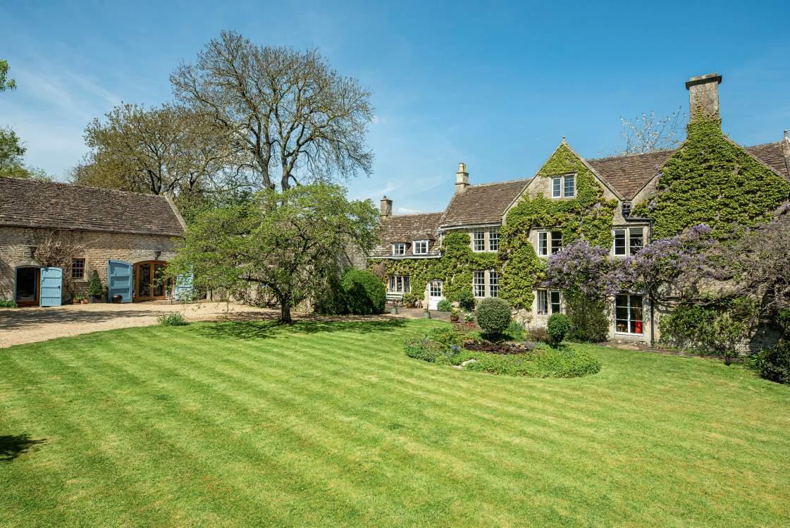A beautiful 18th Century Grade II listed Cotswold Stone country house with separate coach house accommodation, outbuildings, heated swimming pool, tennis court and garage, surrounded by gardens with orchard, woodland and paddock in approx. 5 acres.