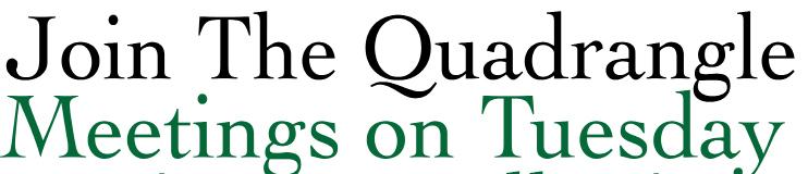 The Quadrangle’s staff holds weekly open meetings on Tuesdays at 4 p.m. All are welcome to come and join the club.