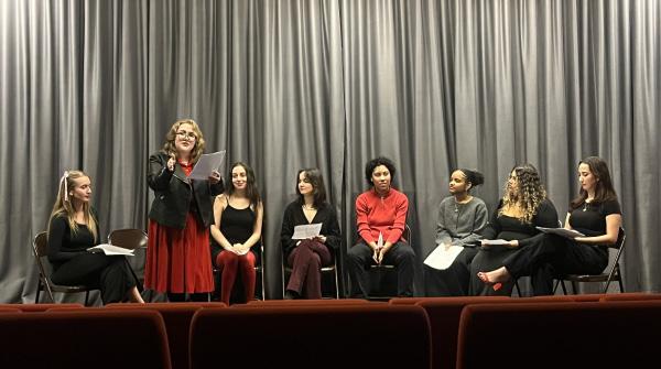 Senior Angelina Perez and sophomore Karie Alvarez directed this year’s V-Day performance, named “Her Body, Her Voice: A Collection Of V-Day Monologues,” where they set up chairs on the stage of Hayden 100 to create a quiet scene for the topics presented.