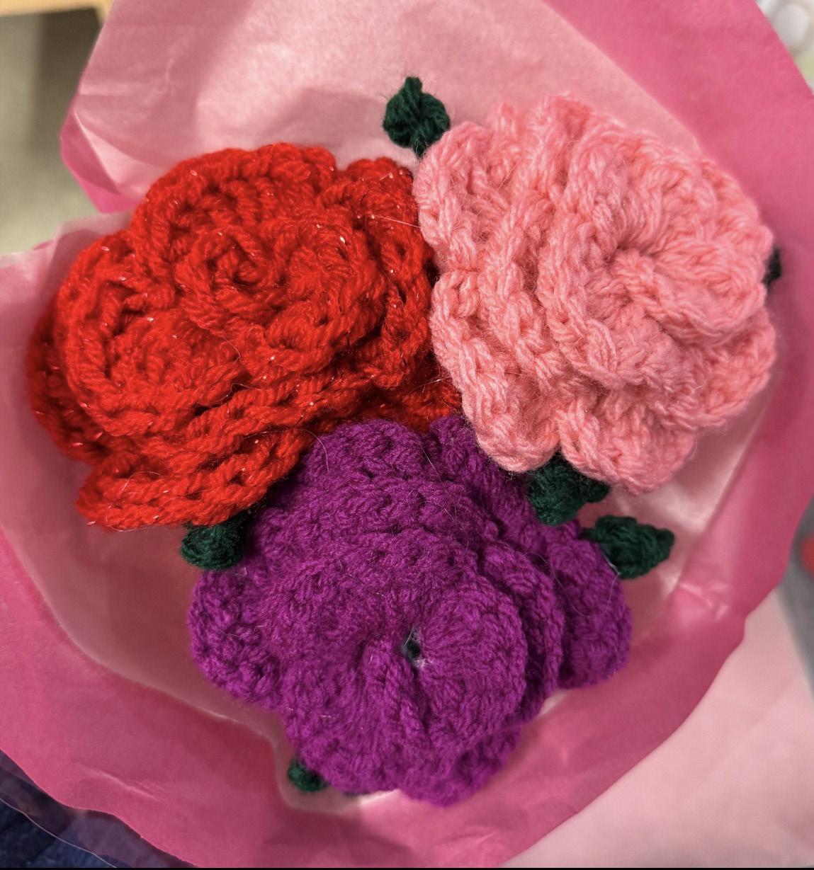 The Crochet Club’s rose sale consisted of a table filled with crochet roses, both singlestem and mini bouquets. Students and faculty members were able to pre-order their rose(s) or purchase them upon availability during Valentine’s week.