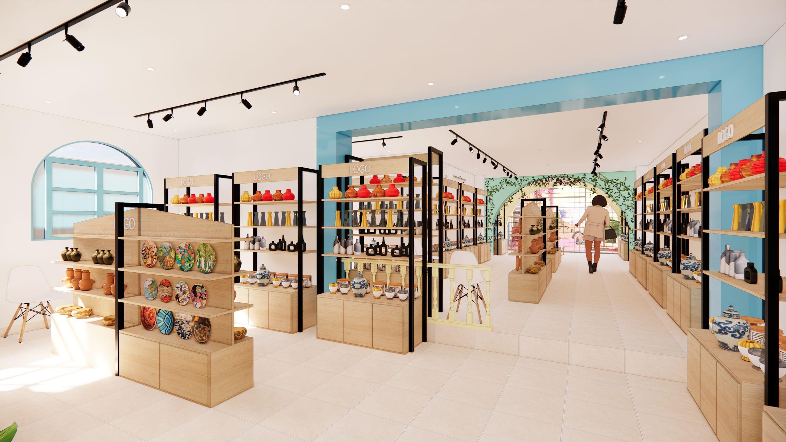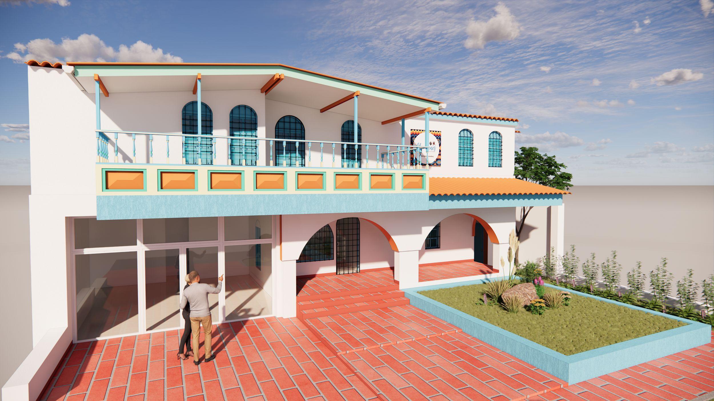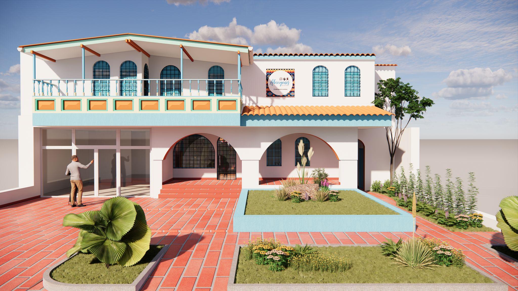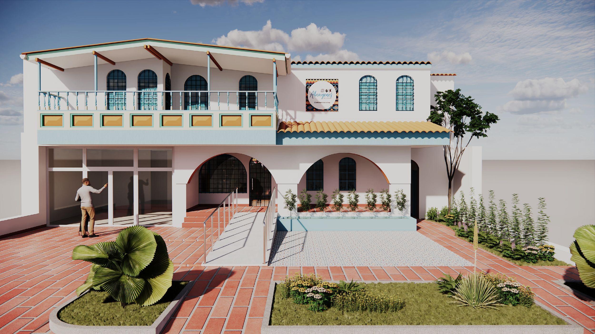 1. Planteamiento de colores variados en fachada, para brindar estabilidad, serenidad y a su vez un toque distintivo y llamativo, acorde a la paleta de colores tomada del logo entregado por los socios de la marca Aborígenes.