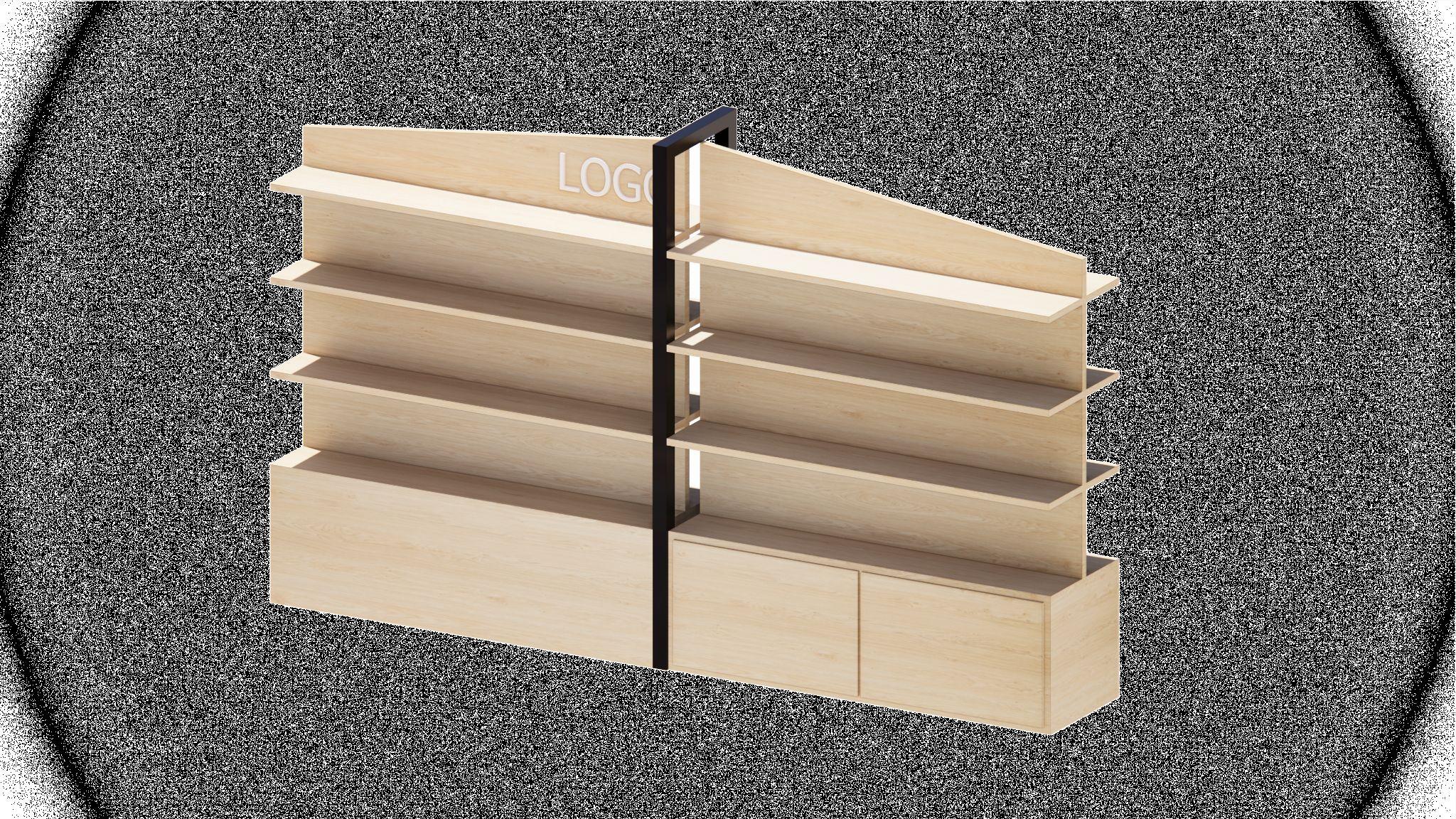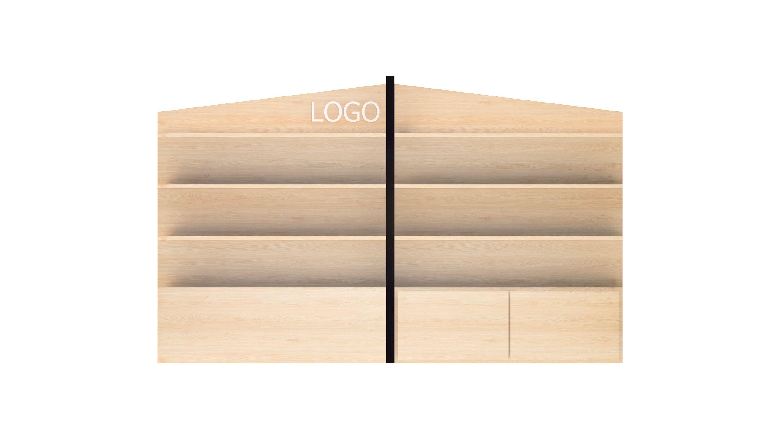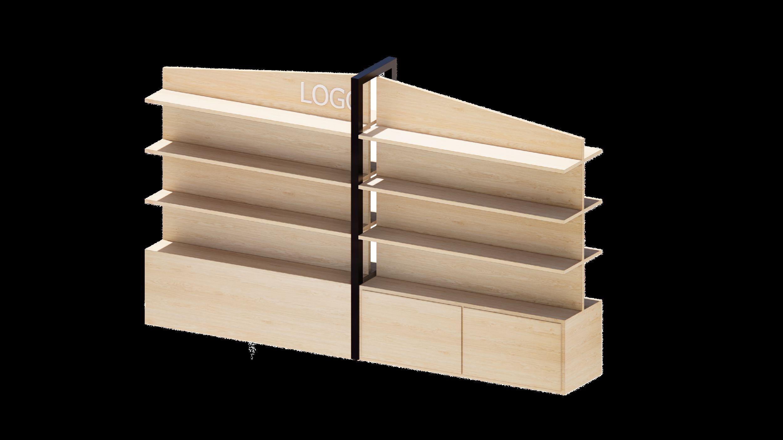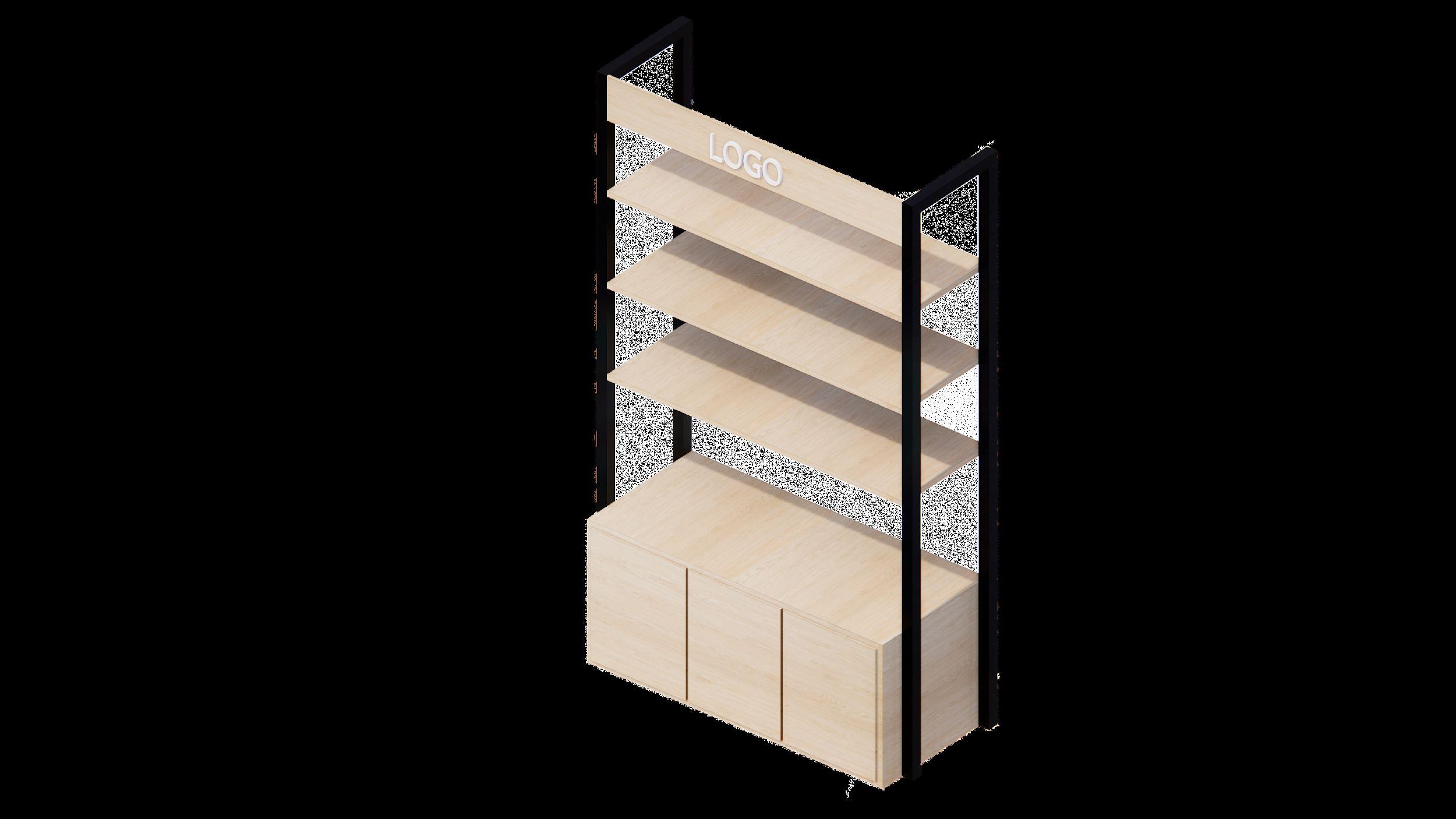 2. STAND TIPO ISLA: DIMENSIONES:H:1.50m;Largo:2.40m;Ancho:40cm- Incluye àrea inferior de almacenaje