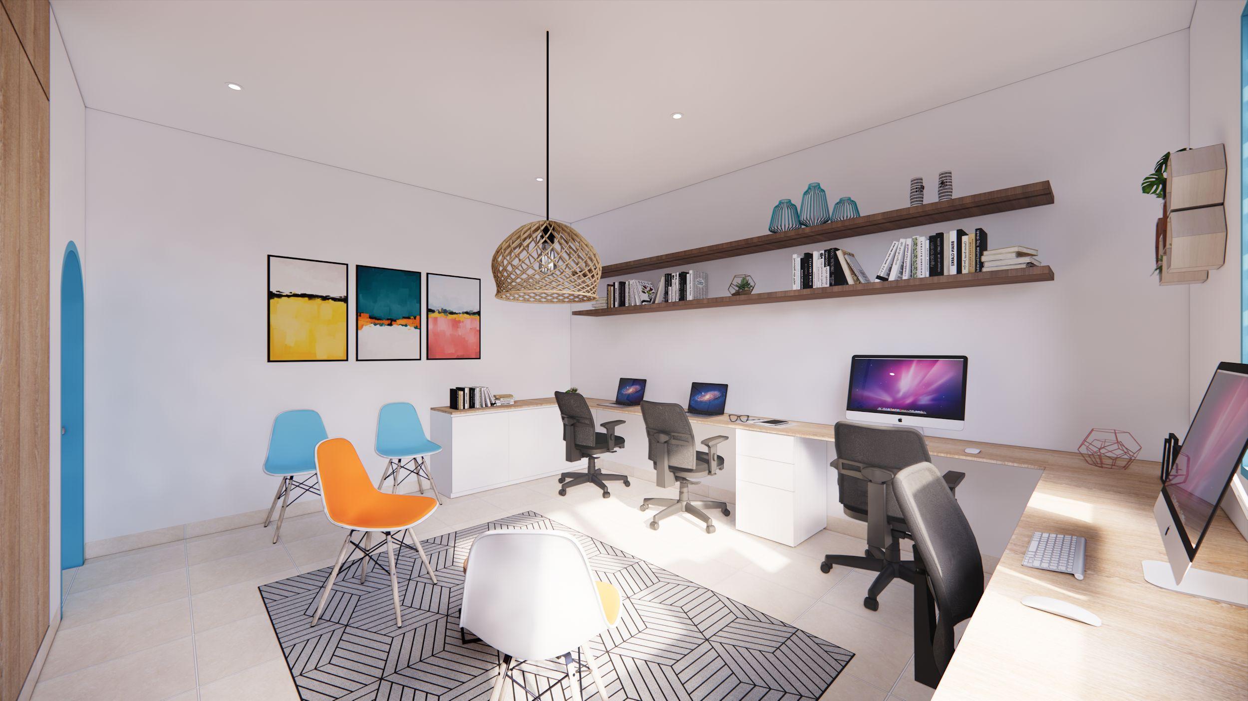 Acorde a las necesidades del cliente y la disponibilidad de espacios de la vivienda, se plantea la utilización de aquellas áreas no dispuestos paraferia,paraserutilizadosy adecuados como oficinas o espaciosdereunión.
