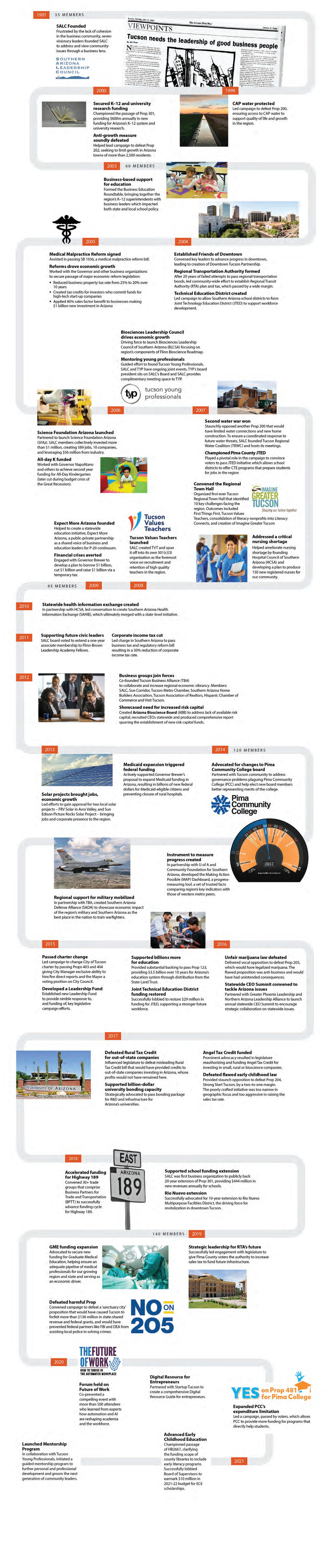 Enhancing our region’s economic vibrance for more than two decades has been the Southern Arizona Leadership Council. Honoring its 25th anniversary as a key nonpartisan, policy-focused organization, SALC boasts more than 140 C-suite executives who forward a unified business voice and a drive an enhanced quality of life. SALC’s meetings could be called the region’s version of a Davos or a G20 of the Southwest--essentially a summit of the region’s best business