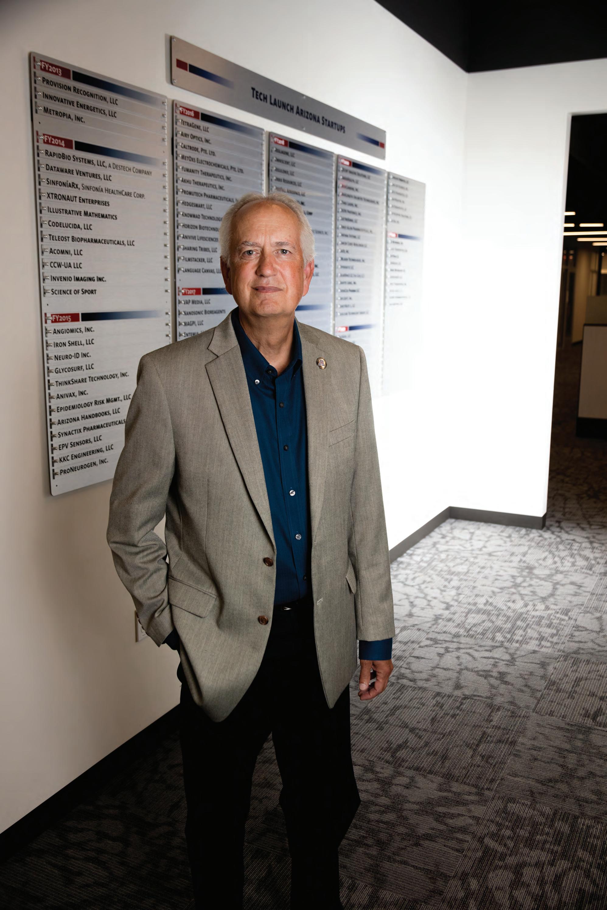 With all the knowledge and innova tion on the UArizona campus fueling the development of life-changing tech nology, there emerged a basic need that UArizona President Robert C. Robbins identified when he arrived on campus in 2017 – investment capital.