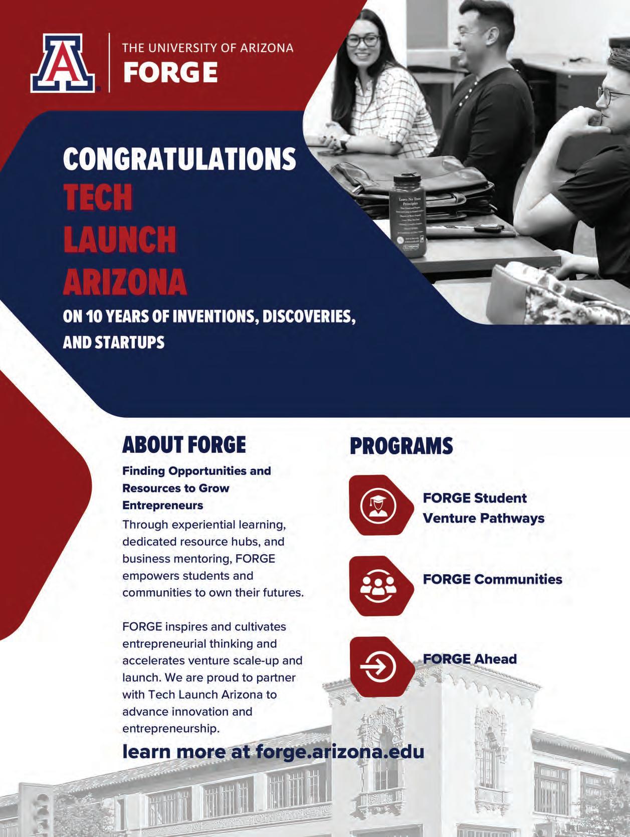 SPECIAL REPORT 2022 THE REGION’S BUSINESS MAGAZINE TECH LAUNCH ARIZONA COMMERCIALIZING UNIVERSITY OF ARIZONA INVENTIONS $1.6 BILLION IN ECONOMIC IMPACT