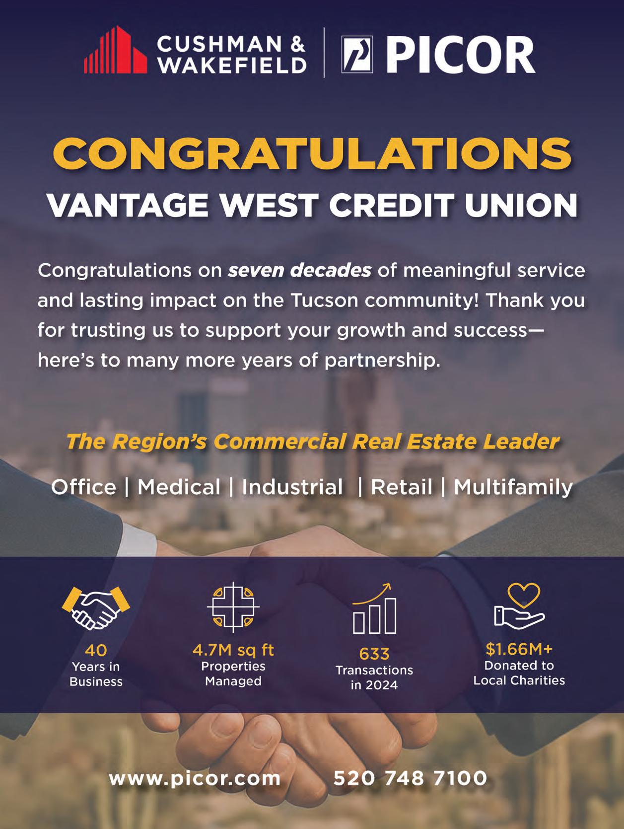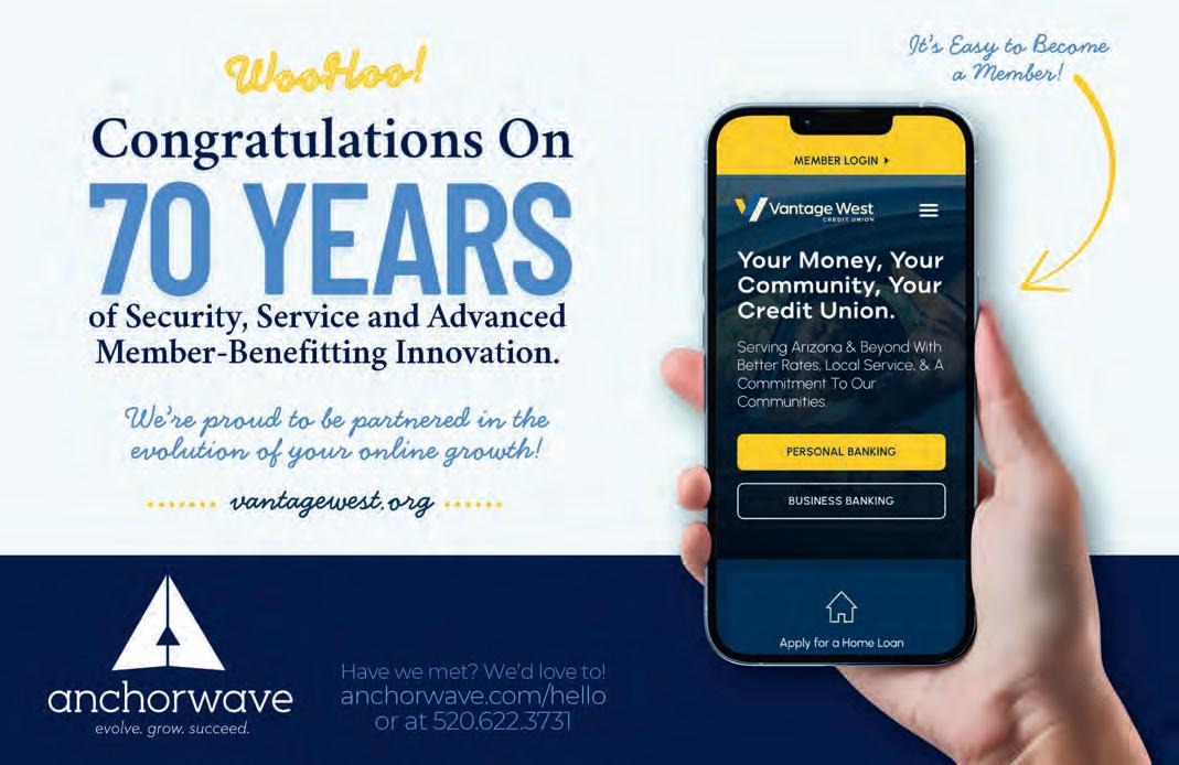 With branches in Tucson and surrounding communities including Marana, Vail, Oro Valley, Tombstone, Casa Grande, Davis-Monthan, as well as three branches in the Phoenix area, Vantage West is taking its financial wellness services to members where they’re needed.