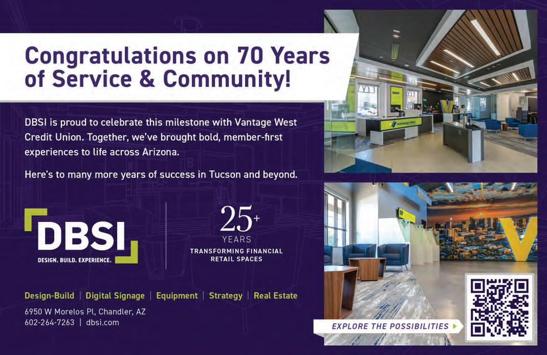 teller machines, Vantage West continues to expand its physical footprint. Its newest location opened in 2024 in the Golder Ranch Plaza on Oracle Road, and the next new branch will open soon at West Naranja Drive and North La Cañada Drive.