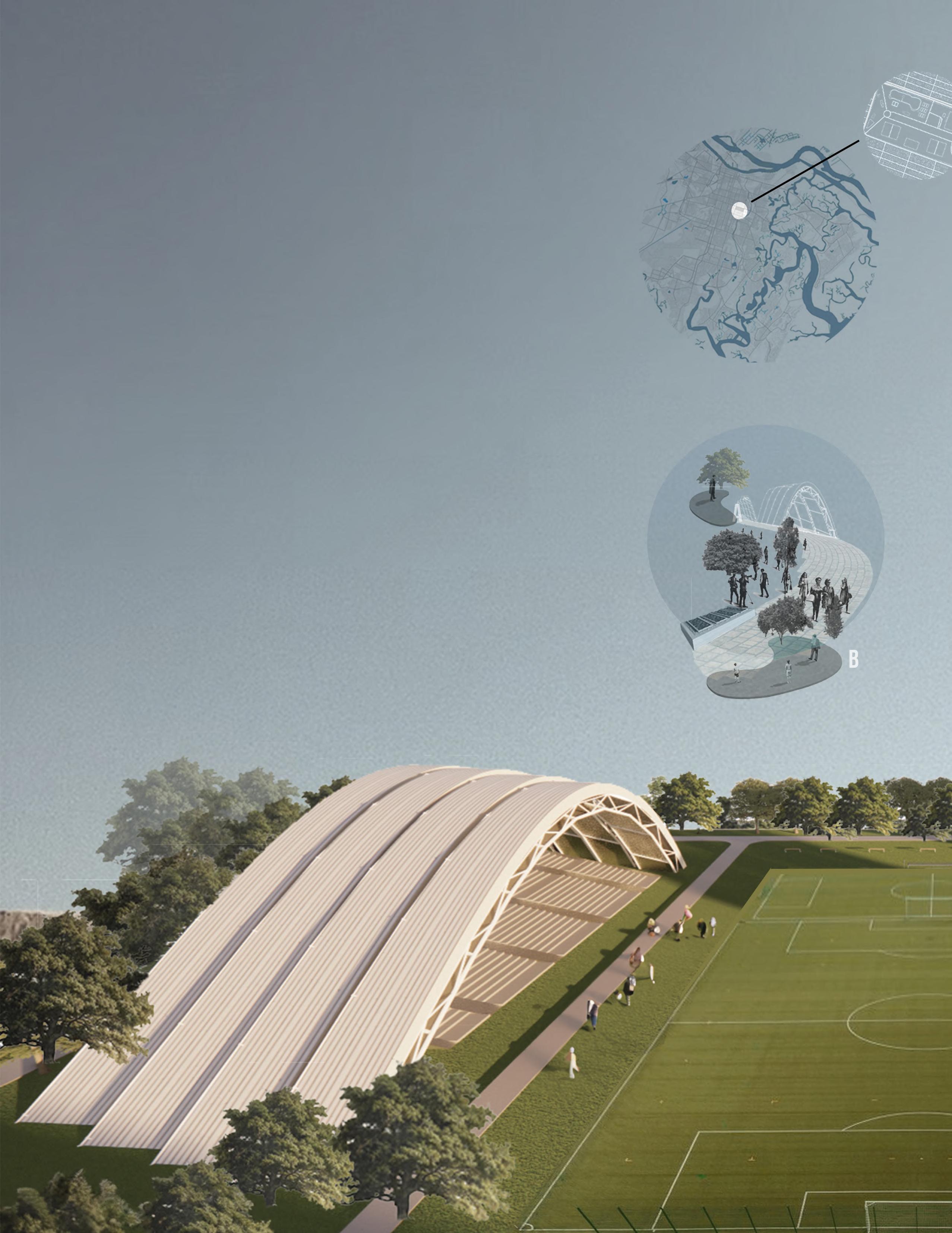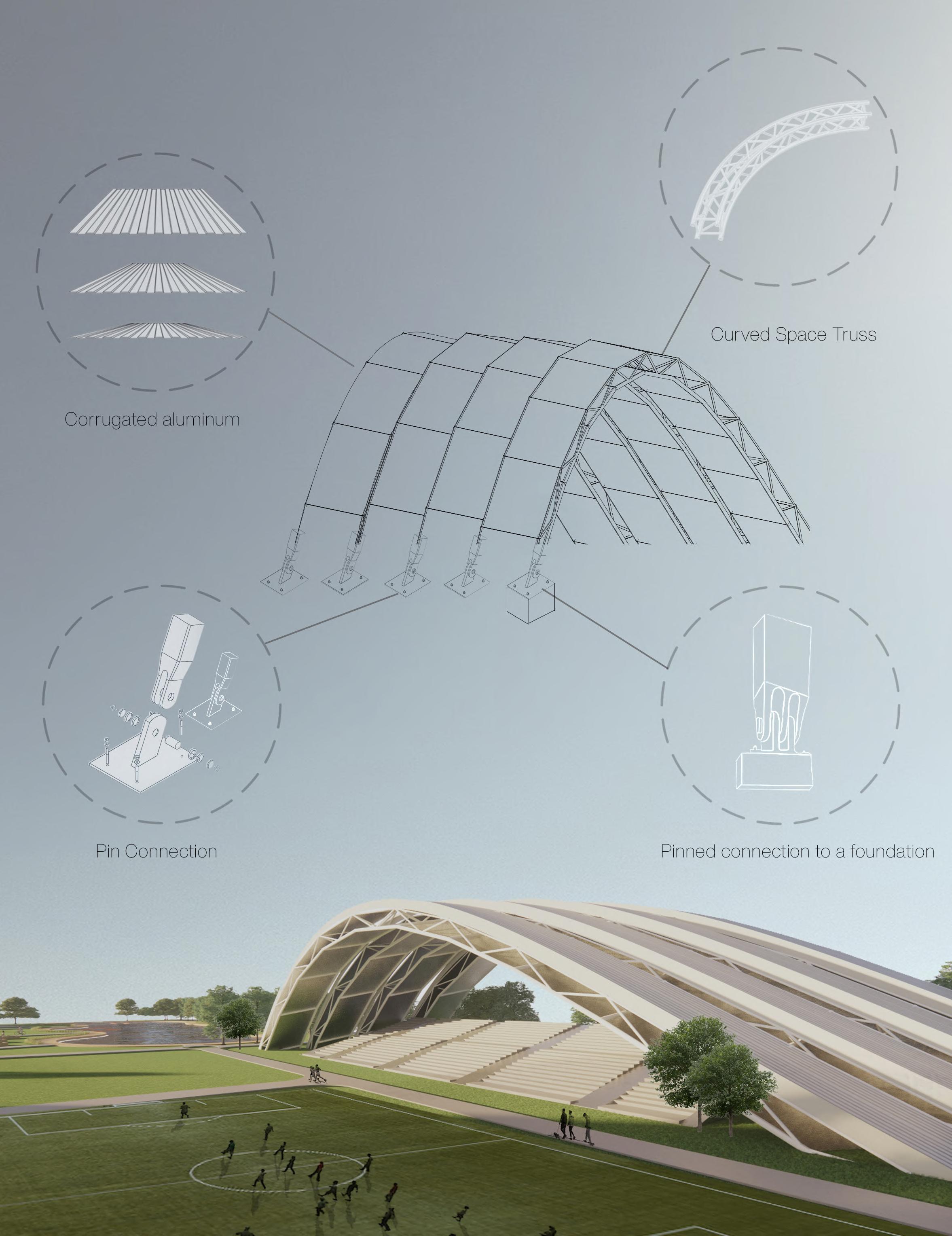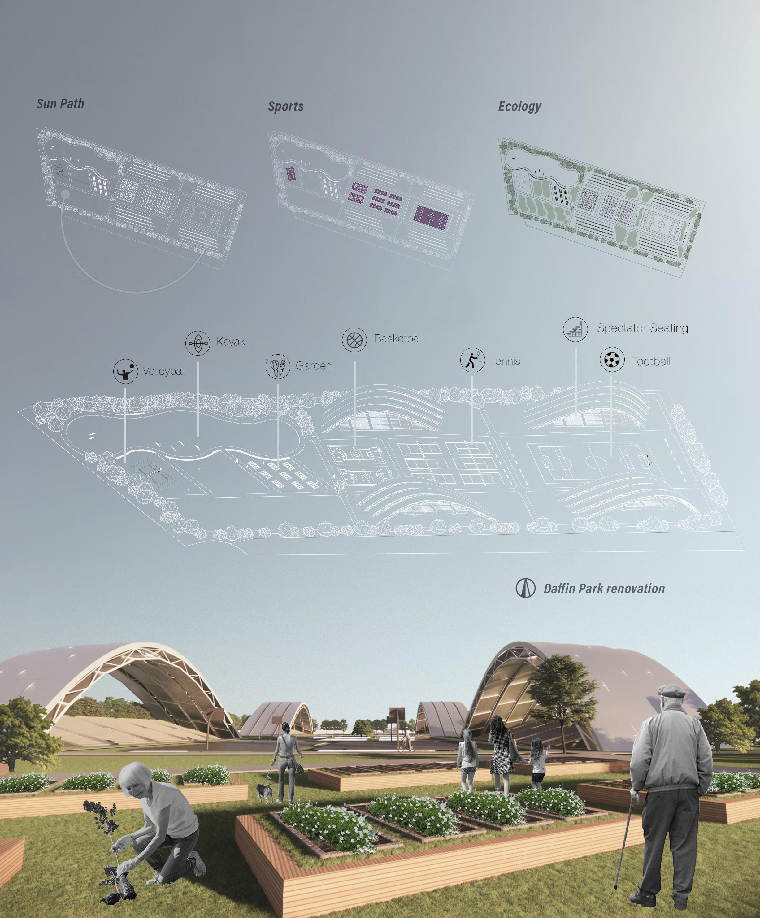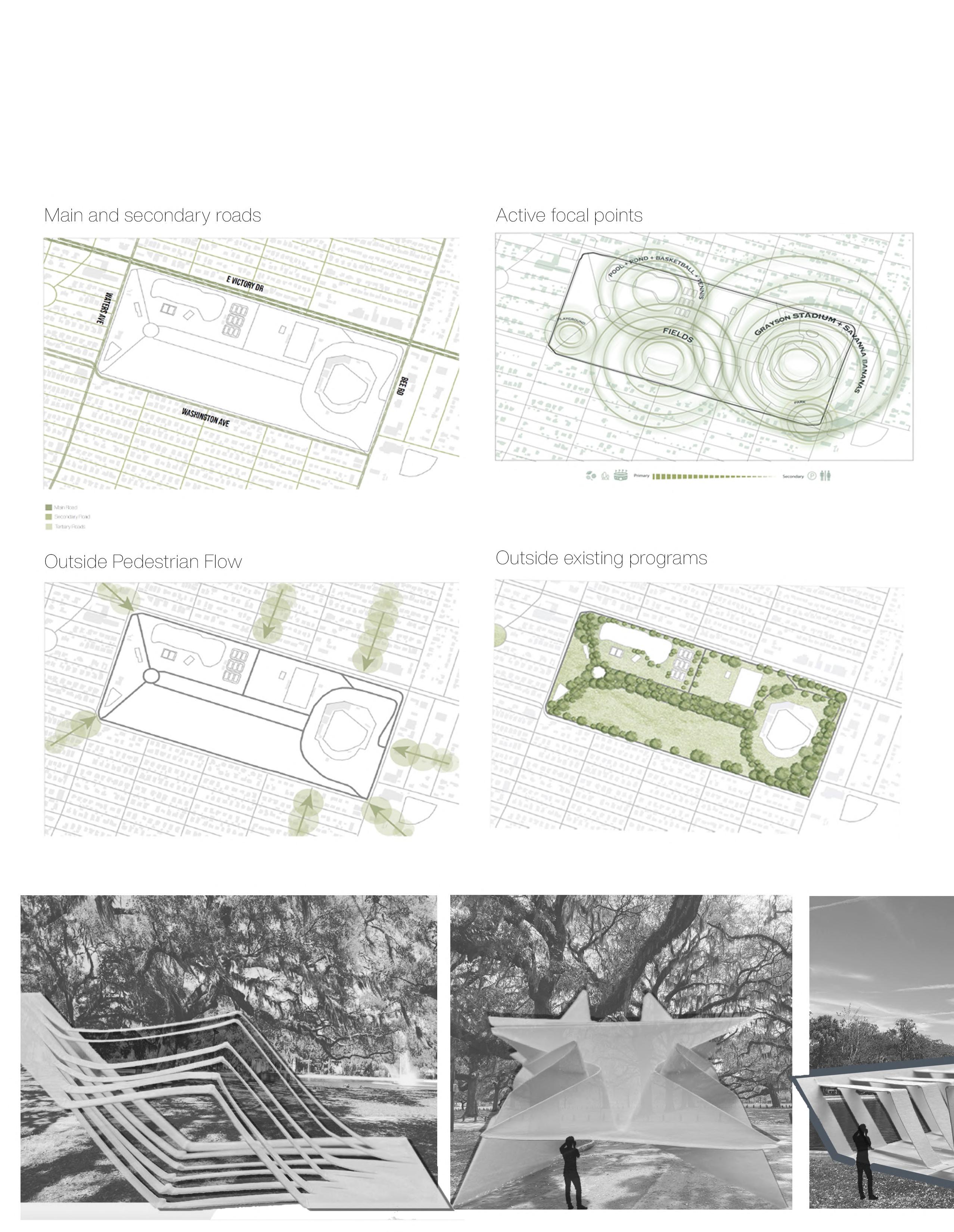 “Connections” was inspired by the movement of the site, Daffin Park. The space of this park allowed me to expand and reorganize the area so that the users can have the perfect mobility between the current and added programs of the site. Connection links the activities, sports, and neighborhood, creating a new and active community in Savannah, GA.