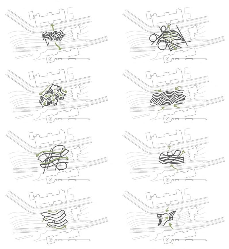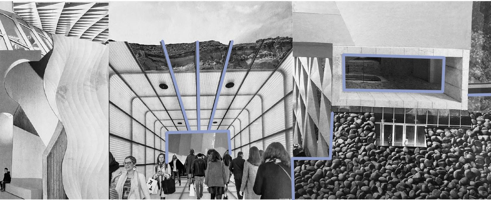 HAND-CUT COLLAGES THAT EXPLORE THE SITE, MOVEMENT, PATTERNS AND ENTRANCE