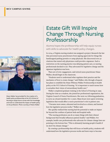 An estate gift from Diane Walker will fund a professorship in health policy at the VCU School of Nursing.