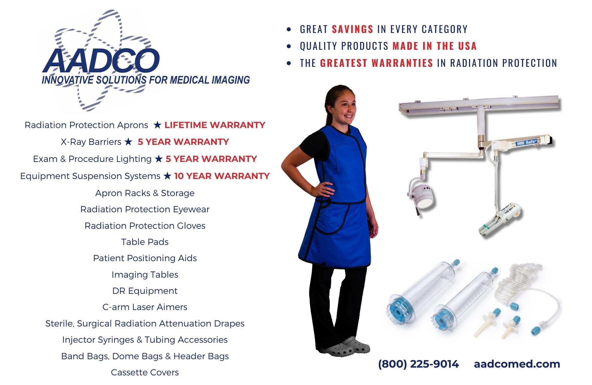 Specializing in the design and manufacture of durable, high quality Radiation Protection and MRI products for worldwide distribution, AADCO’s innovative product line includes a wide variety of X-Ray Protective Garments; Eyewear; X-Ray Barriers; Shields & Suspension Systems; Lighting; and Sterile/Disposable Surgical Products.