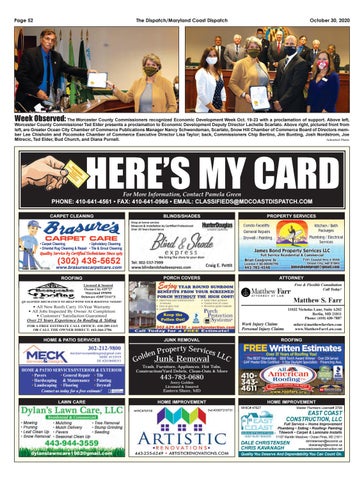 For More Information, Contact Pamela Green PHONE: 410-641-4561 • FAX: 410-641-0966 • EMAIL: CLASSIFIEDS@MDCOASTDISPATCH.COM CARPET CLEANING