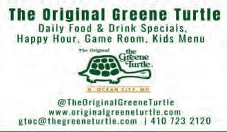 $10 Brisket Melt Sandwich w/Chips 5-8p • $25 Rockfish Imperial w/Fries & Slaw $25 Southern Surf n’ Turf (5oz Crabcake n’ Brisket) w/Two Sides SUNDAY: 2 Single Crabcake Dinners w/Fries & Slaw $25 (Dine-In Only) All-You-Can-Eat Crab Leg, Shrimp & Crawfish Feast From 4-8 p (Dine-In Only) With Beverage Purchase • Subject To Change/Availability Order Online ccfbayside.com@ Trivia Tuesday 6-8pm w/DJ Speed Bump MINGO MONDAY & BAR BINGO THURSDAY 6-8PM LIVE ENTERTAINMENT CARLEY TWIGG FRIDAY 2/24 • 5 P.M. FIL RYTHM SUNDAY 2/26 • 2 P.M. AN OCEAN CITY TRADITION SINCE 1976! 116th St. & Coastal Hwy., Ocean City, Md. 21842 • 410-723-2120 www.originalgreeneturtle.com instagram: theoriginalgreeneturtle facebook.com/theoriginalgreeneturtle FOOTBALLON70+TVS! LARGE GROUPS WELCOME Email For Reservations OPENEVERYDAYAT11A.M.!