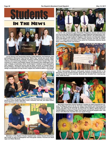 Tina Adams' first-grade class at Ocean City Elementary School used base 10 blocks to solve Easter Egg Math Facts. Pictured, from left, are Owen Evans, Ryder Bahlman and Eva Greenlaw. Worcester Preparatory School students in grades six-eight presented the musical The Magical Land of Oz by Tim Kelly in the Athletic and Performing Arts Center. The musical was directed by middle school teachers Linda Smith and Lindsey MacWha. Above, from left, are Sara Freih, Ava Wilsey, William Mumford, Cayden Wallace and Sydney Tingle, front. Below, serving as poppies were Lilly Doran, Bella Marinelli, Danielle Carr and Jayden Scopp.