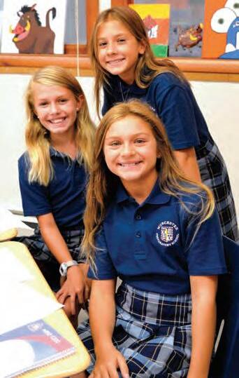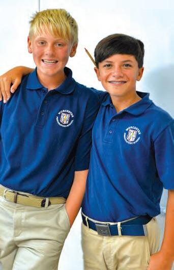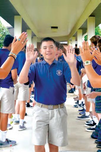 As has become tradition, Worcester Prep staggered its start last month by division with upper school holding orientation days followed by middle and lower schools. Above, sixth graders Haley Hanna, Aylin Kucuk and Alessia Ziman are pictured. Below, a first-day tradition at WPS, the seniors line up to welcome underclassmen to school, like freshman Reed Corron. Bottom, seventh graders Soren Poulson and Emerson Bofinger are all smiles.