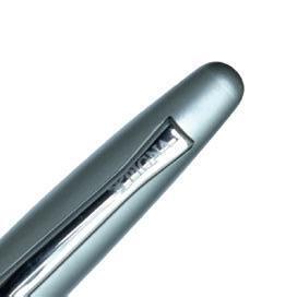 Penna a sfera caratterizzata da linee morbide che la rendono giovane ed elegante. Fusto laccato con la clip, anellino e puntale cromati. Fornita in un astuccio regalo.