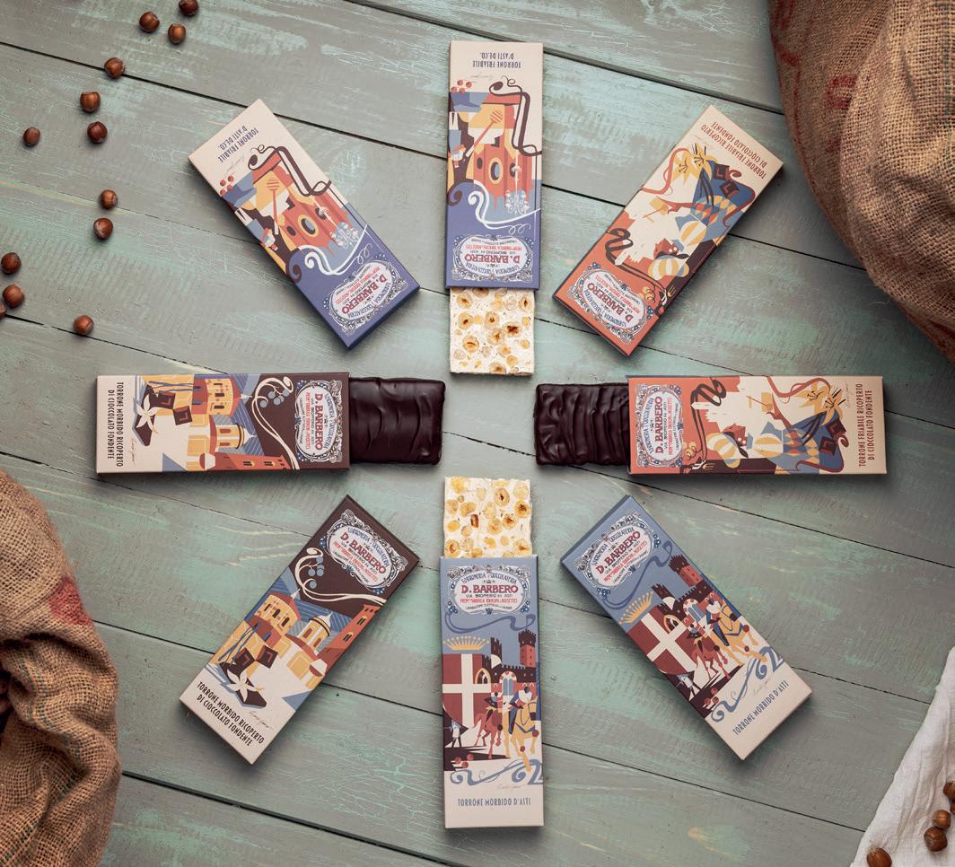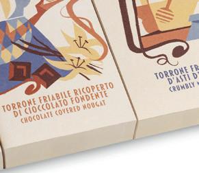 Torrone morbido o friabile, con nocciole IGP o ricoperto di cioccolato fondente, in astuccio regalo.