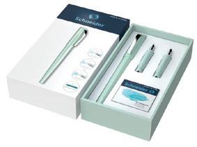 Penna stilografica calligrafica con elegante look metallizzato e impugnatura ergonomica gommata. Confezione regalo contenente una stilografica calligrafica Callissima con 3 punte intercambiabili (1,1; 1,5; 1,8; mm). Comprese 6 cartucce ricambio.
