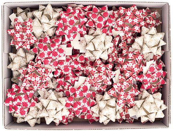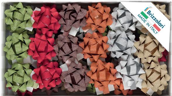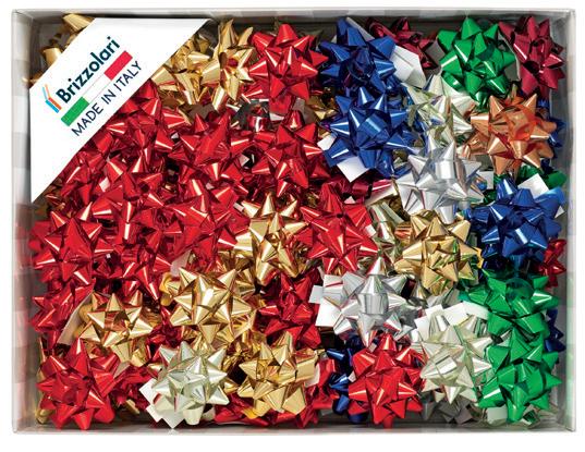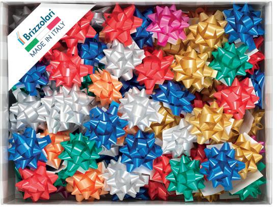 Assortimenti in colori assortiti di stelle e nastri in PPL finitura glitter.