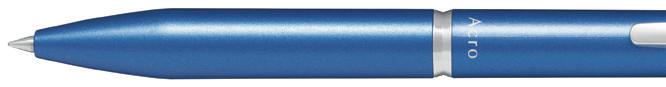 Fusto e impugnatura ergonomica in alluminio anodizzato. Clip a molla in metallo, cromata lucida.
