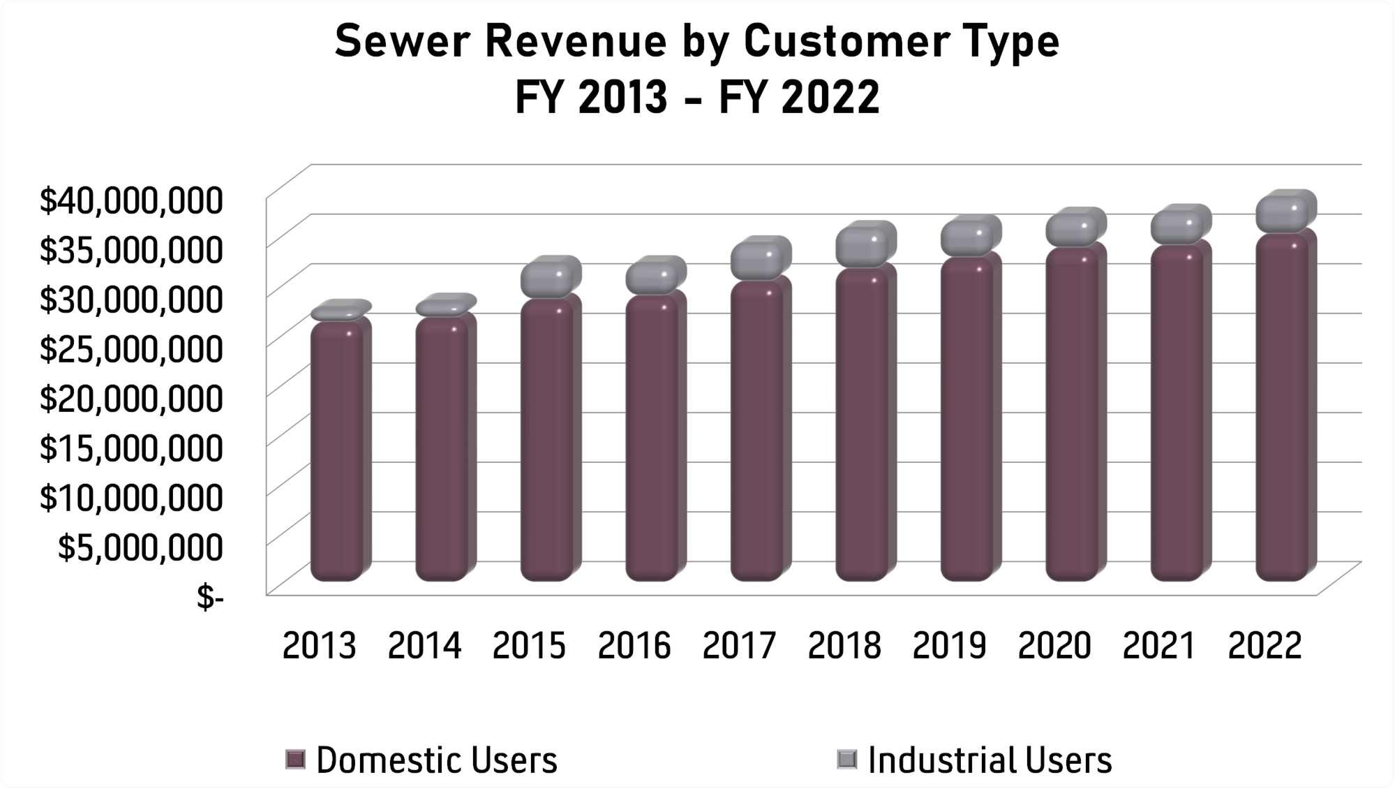 Whileindustrialusageisuniform,residential,andcommercialexpansionhasresultedina higher demand for MSD services, as evidenced by growth in overall revenue, and especially by facility andtapfeesdirectlyresultingfromnewdevelopment.ThemajorityofnewresidentsbeingDistrict customers result from emphasis on in-fill development by local communities and large new subdivisions with developer-donated sewer infrastructure.