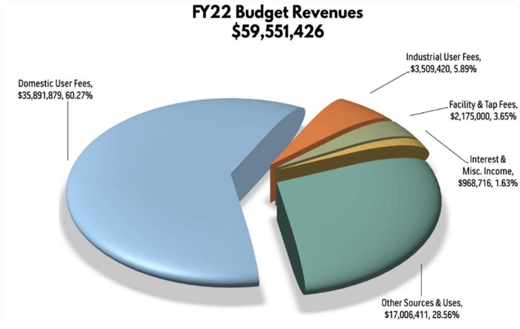 The District also owns, operates, and maintains a 40 million gallon per day (MGD) wastewater treatment plant to treat raw sewage and industrial wastewater as well as a hydroelectric facility, which is used to generate power for the wastewater treatment plant, which helps defray utility costs for theoperation.