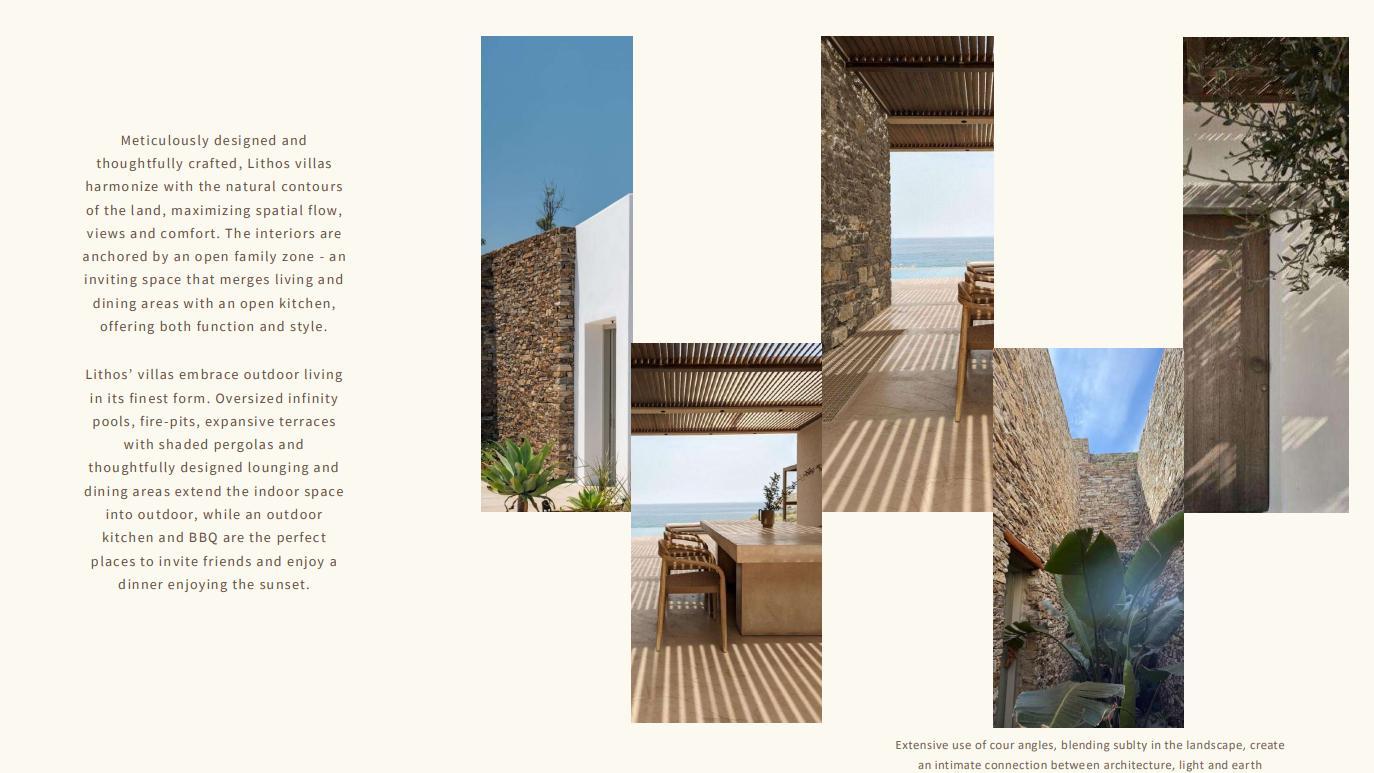 Only a 2-minute drive from the beach and protected from the northern winds, Lithos Residences offers mesmerizing sea and sunset views over Despotiko Island a rare setting of serenity, privacy, and design excellence.