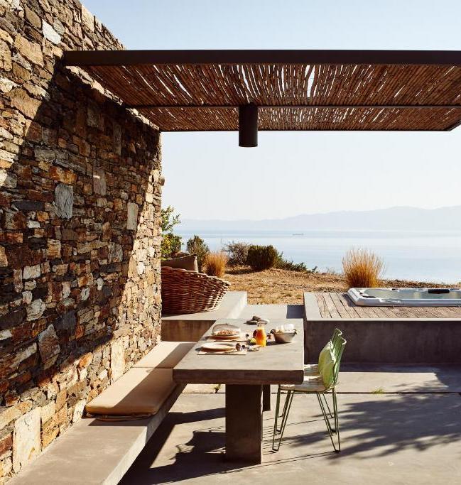 Set amid a lush, green hillside with open sea views, the estate blends sustainable architecture with timeless island authenticity. Its natural stone walls, shaded terraces, and handcrafted finishes integrate perfectly with the surrounding landscape, creating a tranquil atmosphere ideal for private living or boutique hospitality use.