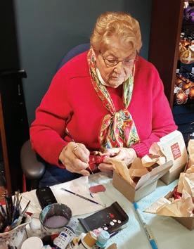 Marj Nejdl personalizing ornaments during Old World Christmas Market.