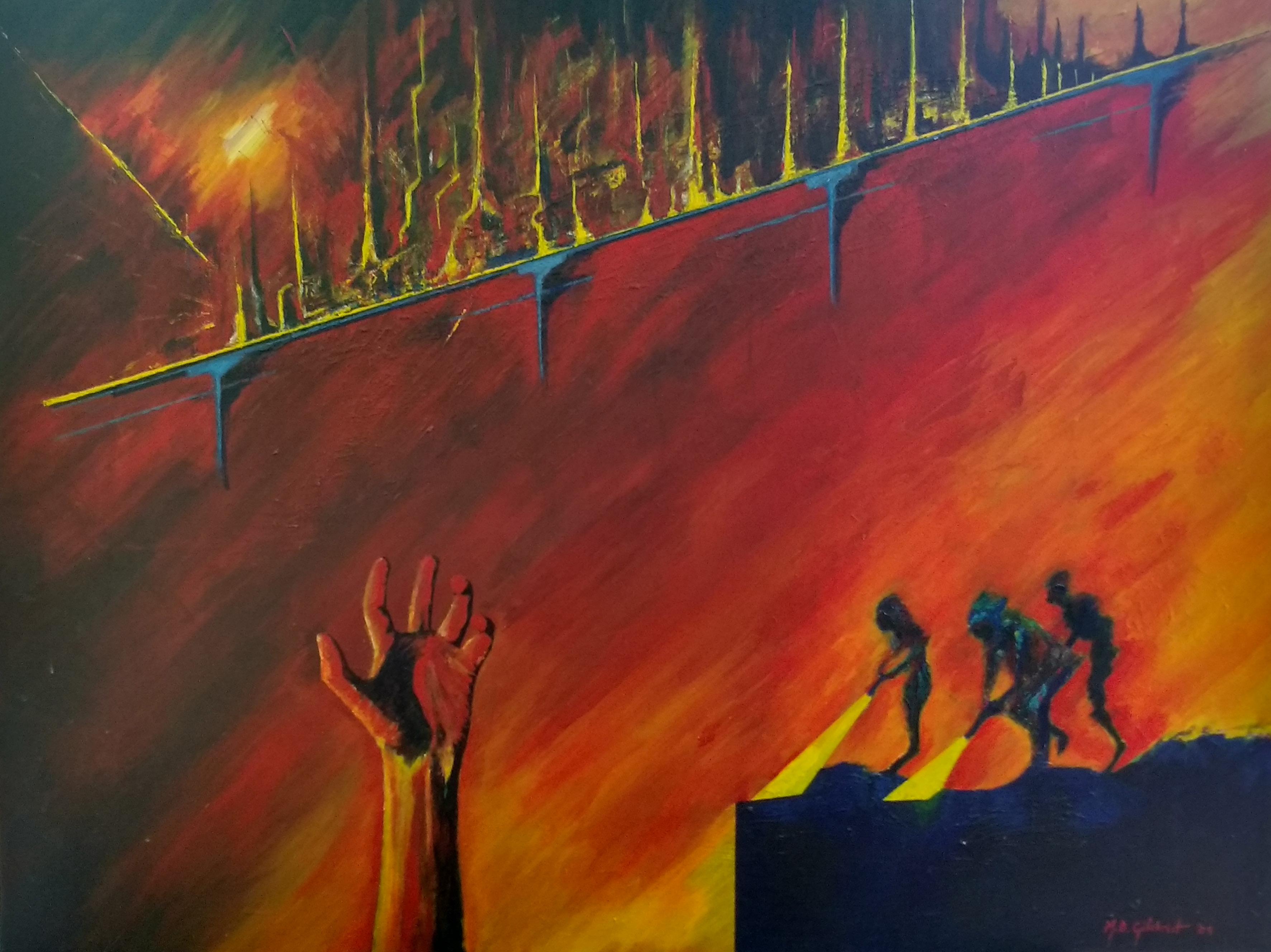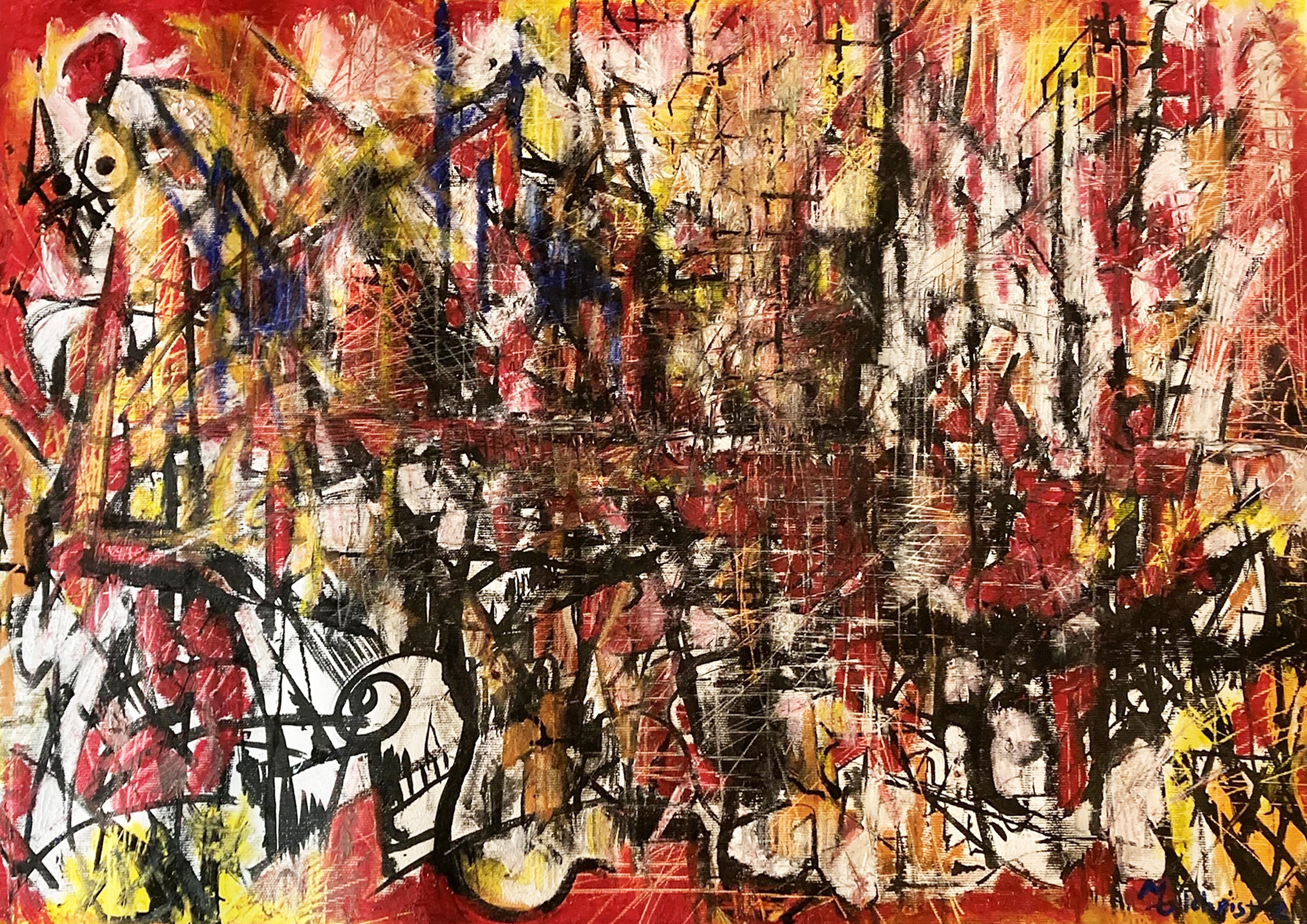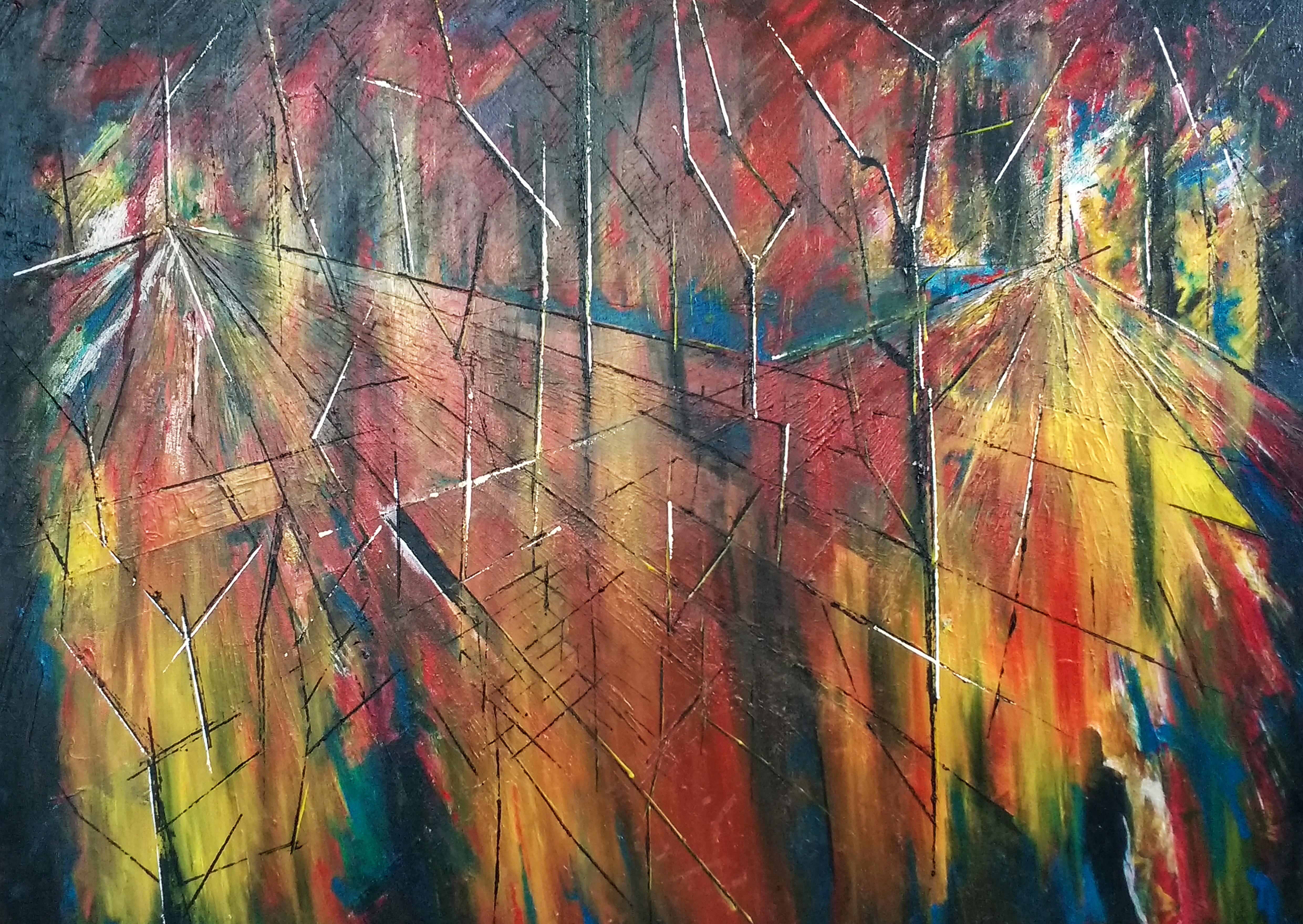 My artistic endeavors extend to traditional mediums as well. I work with oil sticks and oil paints on large canvases, and I enjoy experimenting with pastels, black ink, and etching at my local art studio.