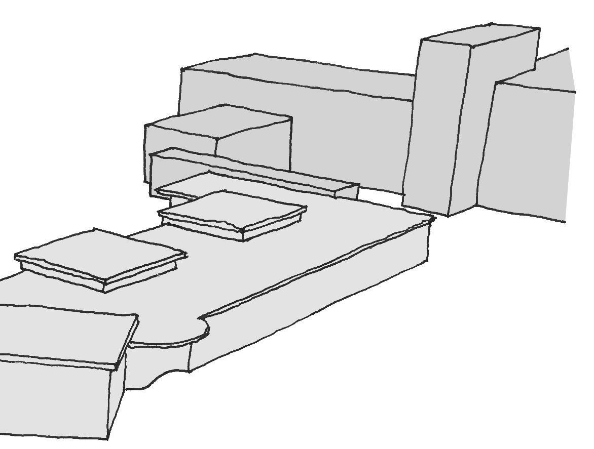 • Redesigning the service routes for the west wing and existing building, detailing their implementation and housing.