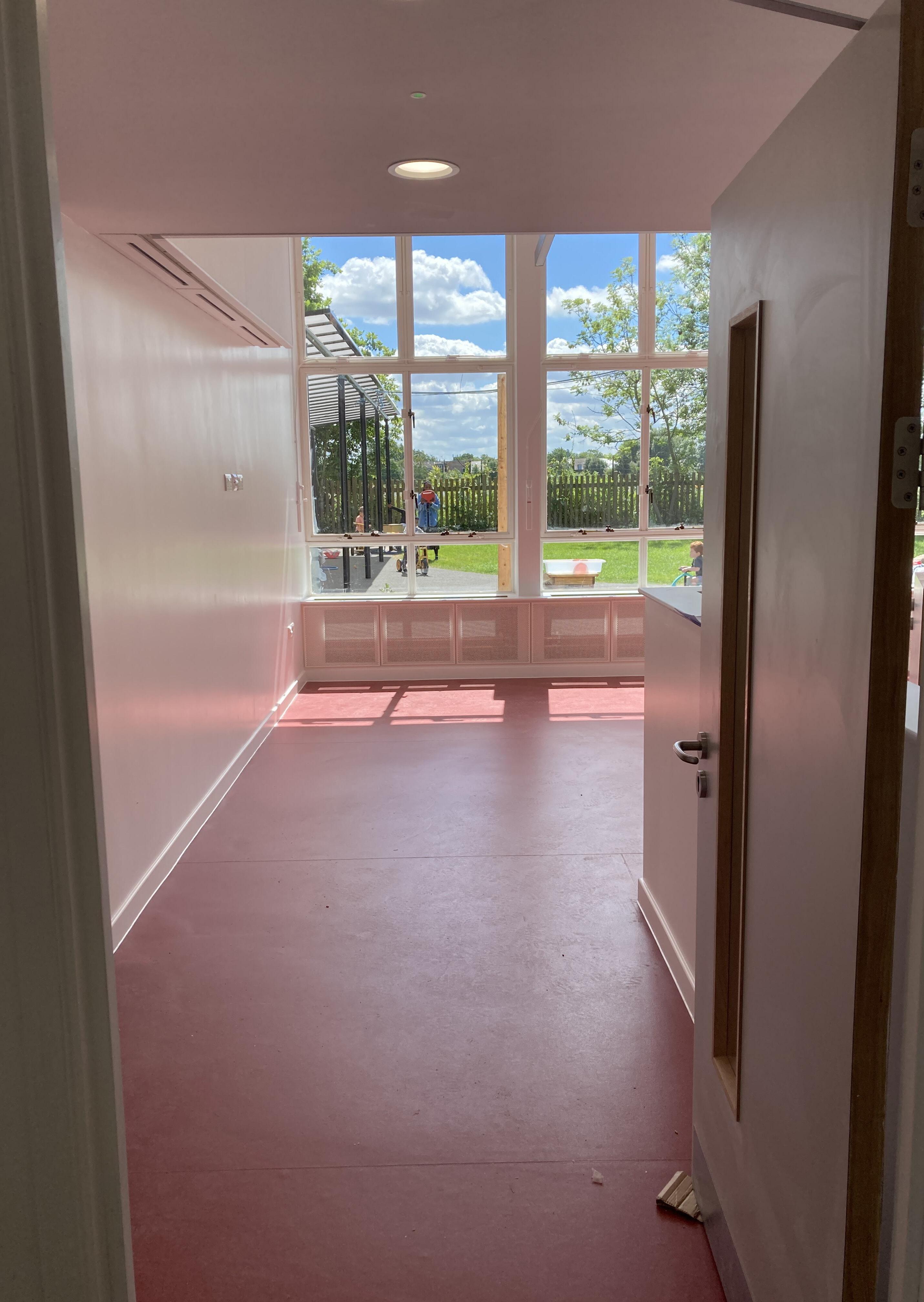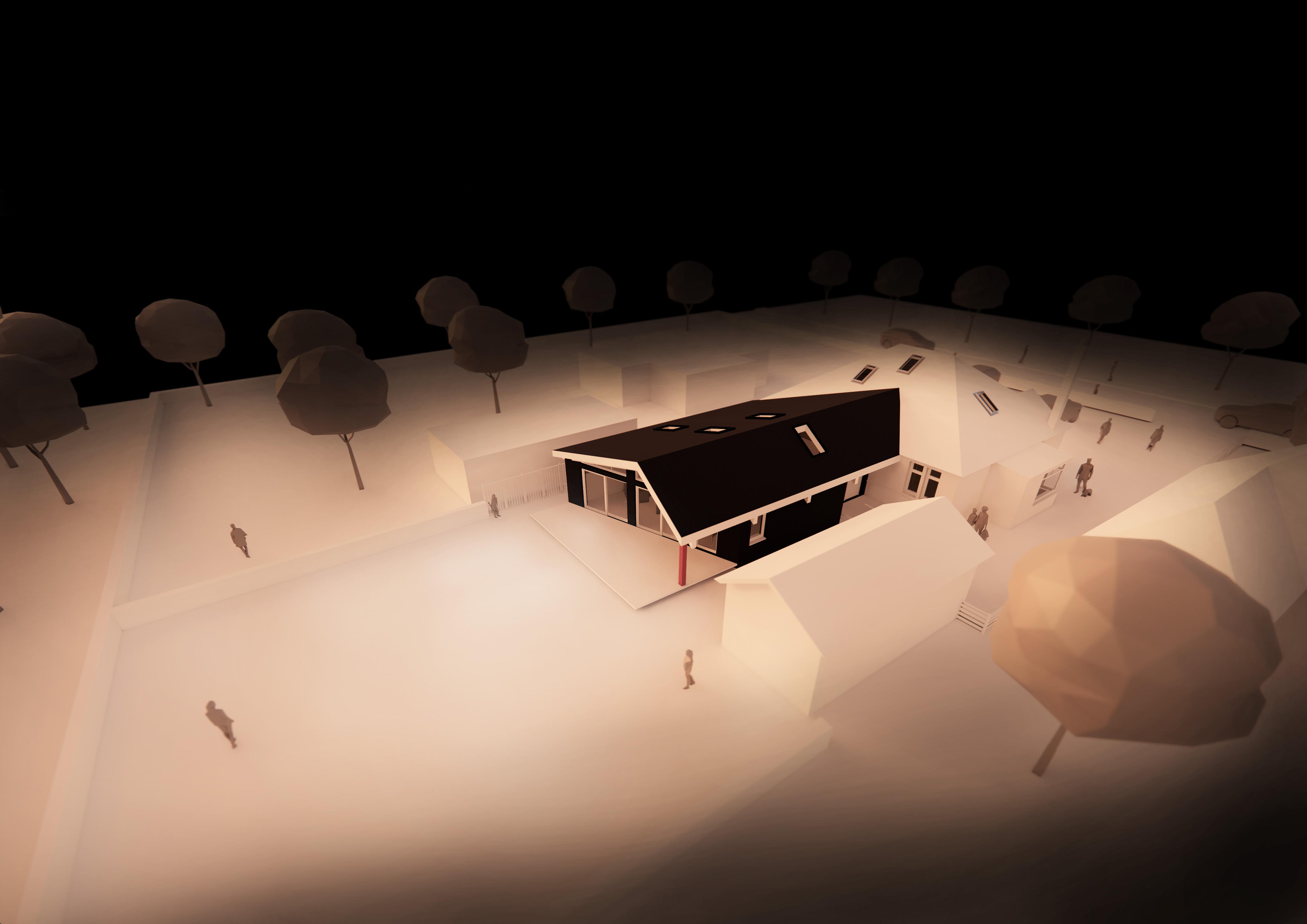Existing nursery is a single storey annex of the health centre with dominant clerestory pop-ups over the principle spaces
