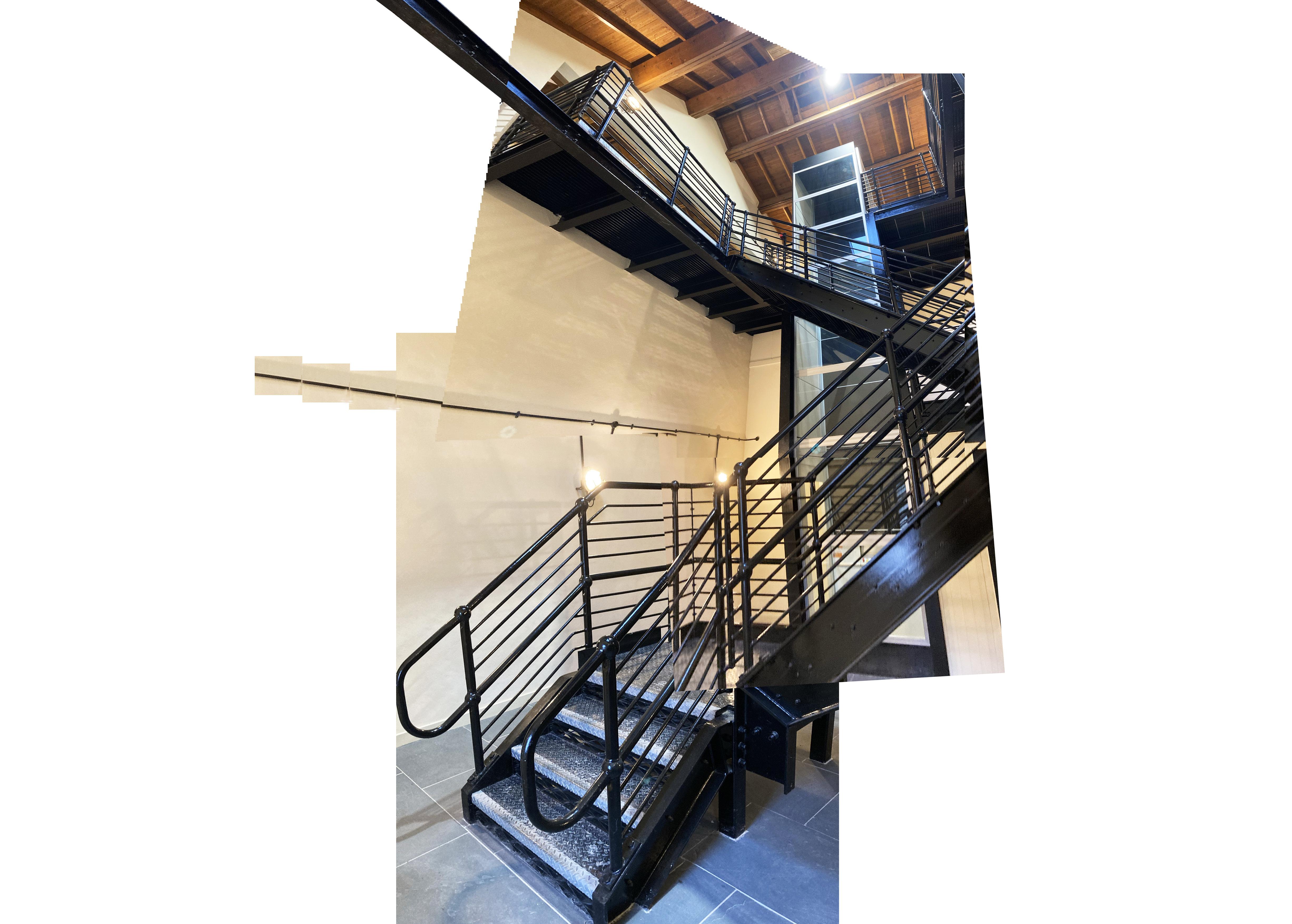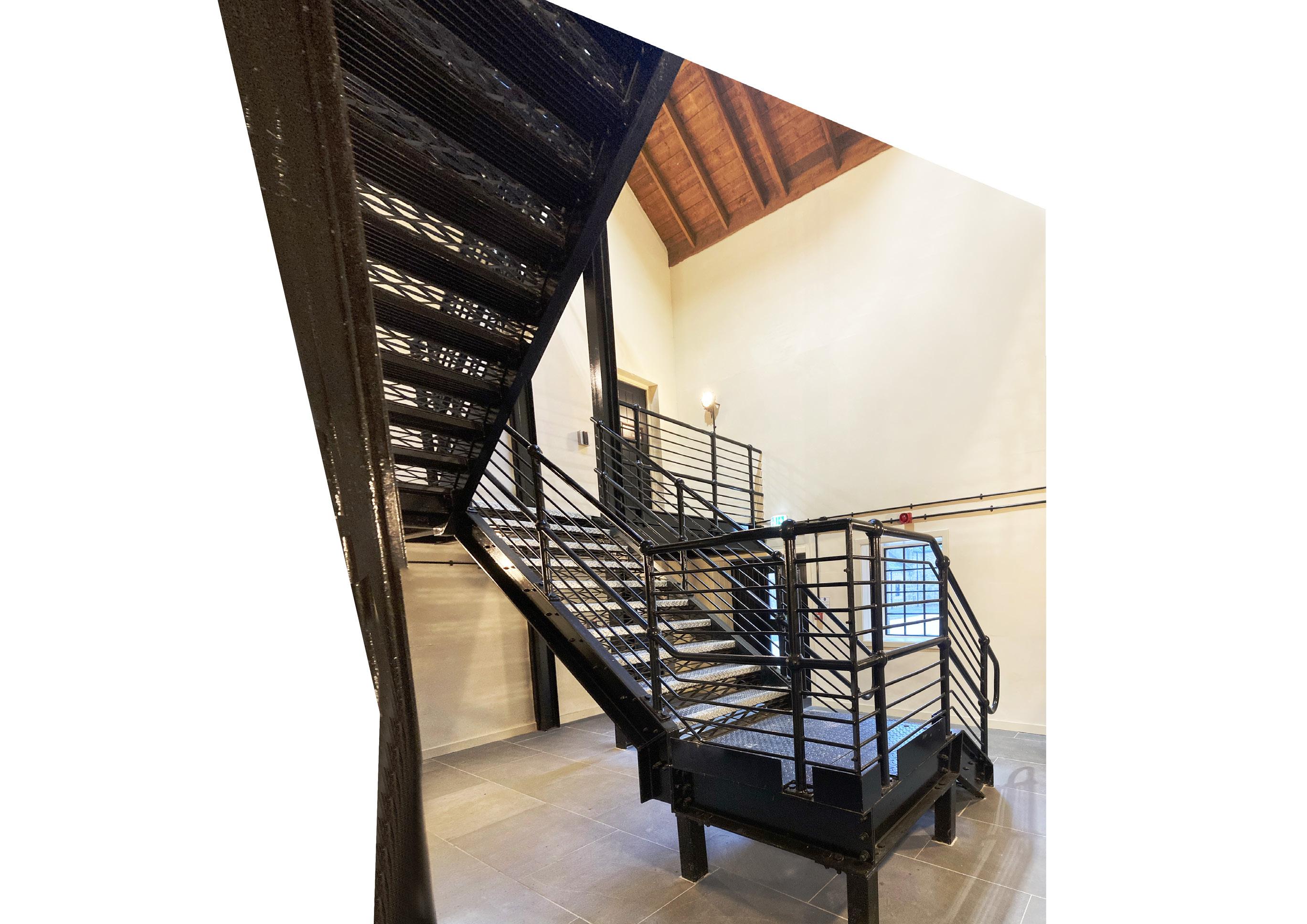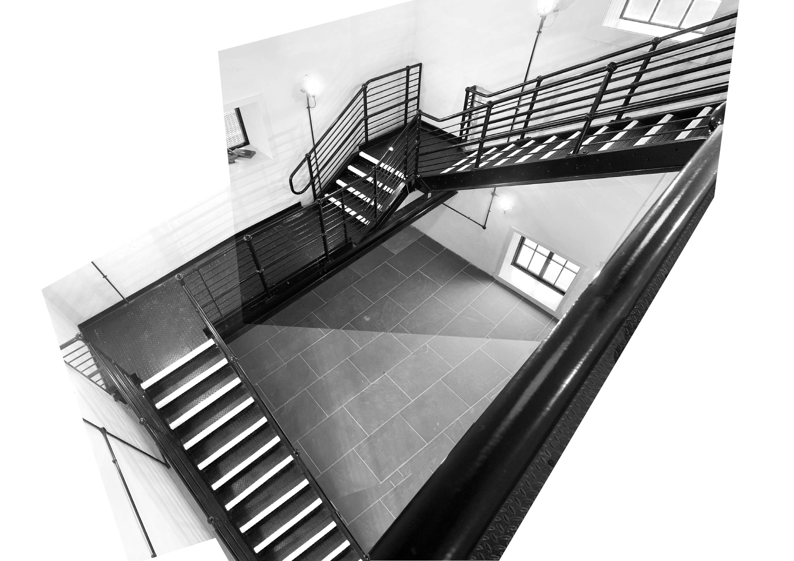 Support steelwork + stringers, durbar plate to landings and treads, balustrades, handrails finished in black gloss paint