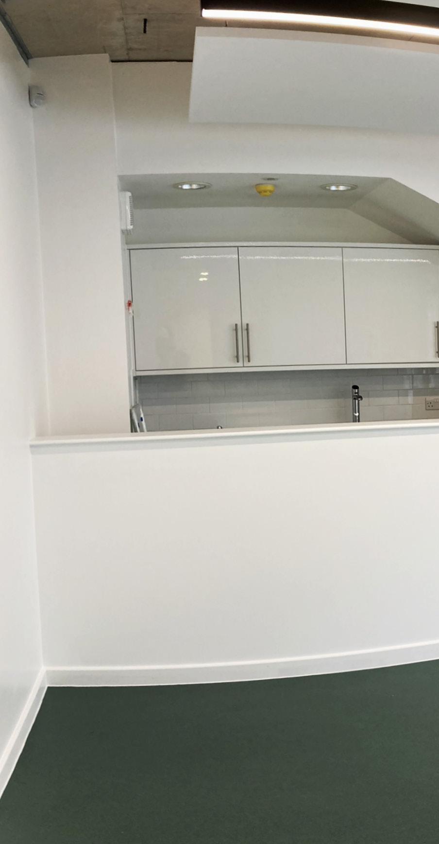 10 proposed services could not be fixed to soffit steel beams fix to existing walls 18mm mdf access panels with 50x75mm sw framing hung from ub with 25mm shadow gaps services fixed to unistrut spanning onto the ub and fixed to the existing wall.