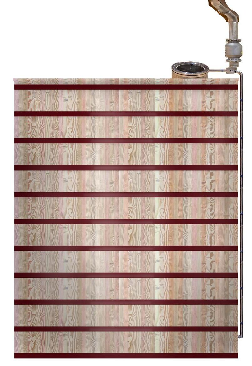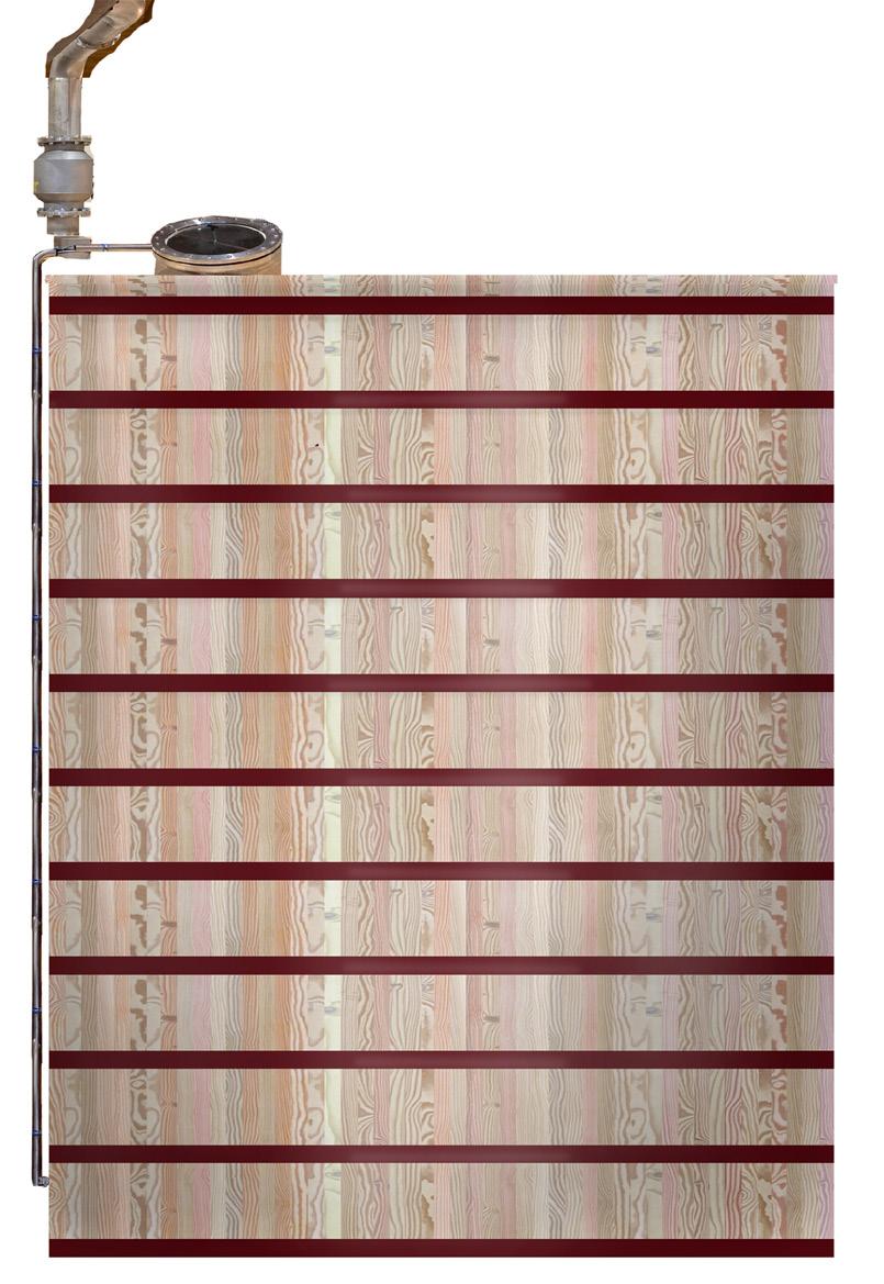5 radiator encasement gooding aluminium 2mm perforated panels with ver t fix fixings on 50x50mm sw framing on 2 x 22mm copper tubes mounted in aluminium fins on 25mm spacing with 50mm spacing to front and 25mm spacing to back