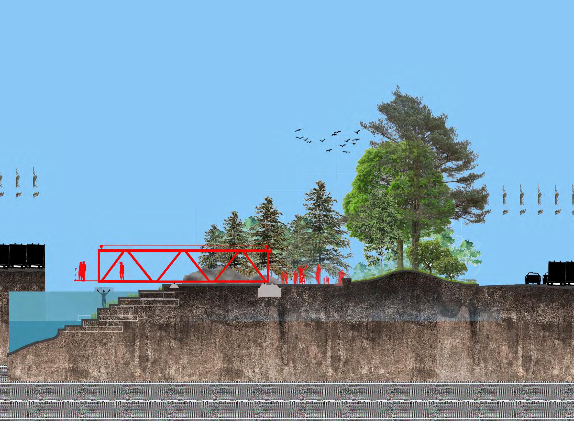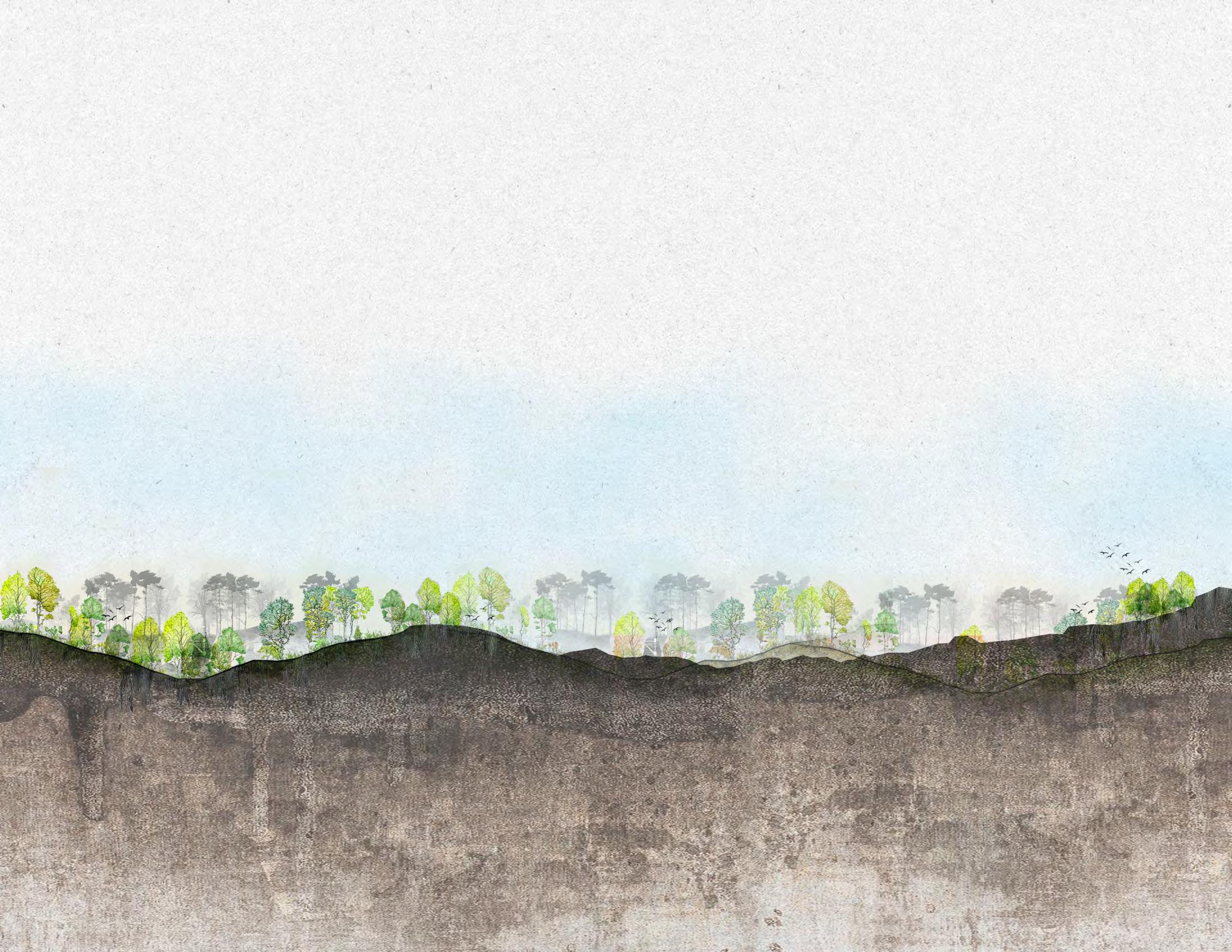 Concept: Erosion is the indication of a force in the intervened area, the force is water that is behind the happening of the new landscape form. At the same time, water is taking the place of the land creating its own pathway