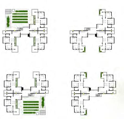 The revised plan features 7 buildings with an additional floor, providing 228 units while maintaining 414 parking spaces (exceeding the required 410). Removing one building enhances lake exposure for residents and creates space for future developments like a retail area. The design maintains strong community connections, with walkways to the lake and permeable pavement for parking to promote sustainability.