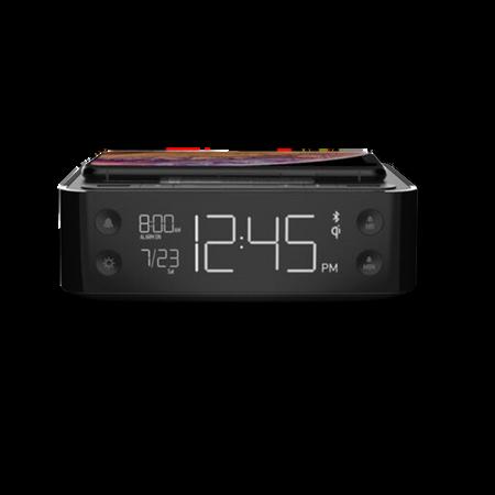 This modernized alarm clock comes with QI wireless charging and dual front-facing USB outlets (USB-C and A). This model is available in both JetWay Black and WarmWalnut fi nish.